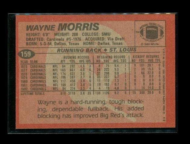 Vintage 1983 TOPPS Football Trading Card #159 WAYNE MORRIS St Louis Cardinals
