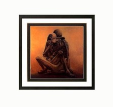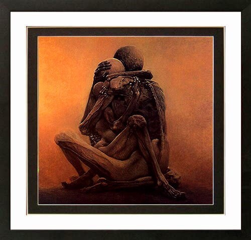 This is a professionally custom framed and vaccum dry-mounted fine art poster edition of an original Zdzislaw Beksinski painting. Glass is included.This is a high quality custom framed matted Print. The double mat adds depth giving the display a unique "looking through a window'' appearance. The print is bonded to foam core on a hot vacuum press. This bonding gives the print a perfect flat and smooth texture. This process also insures the print will never fold or fade with age or moisture. This wonderful display makes a thoughtful and original gift containing a classic vintage touch yet modern design, allowing it to fit alongside both modern and classic decor.