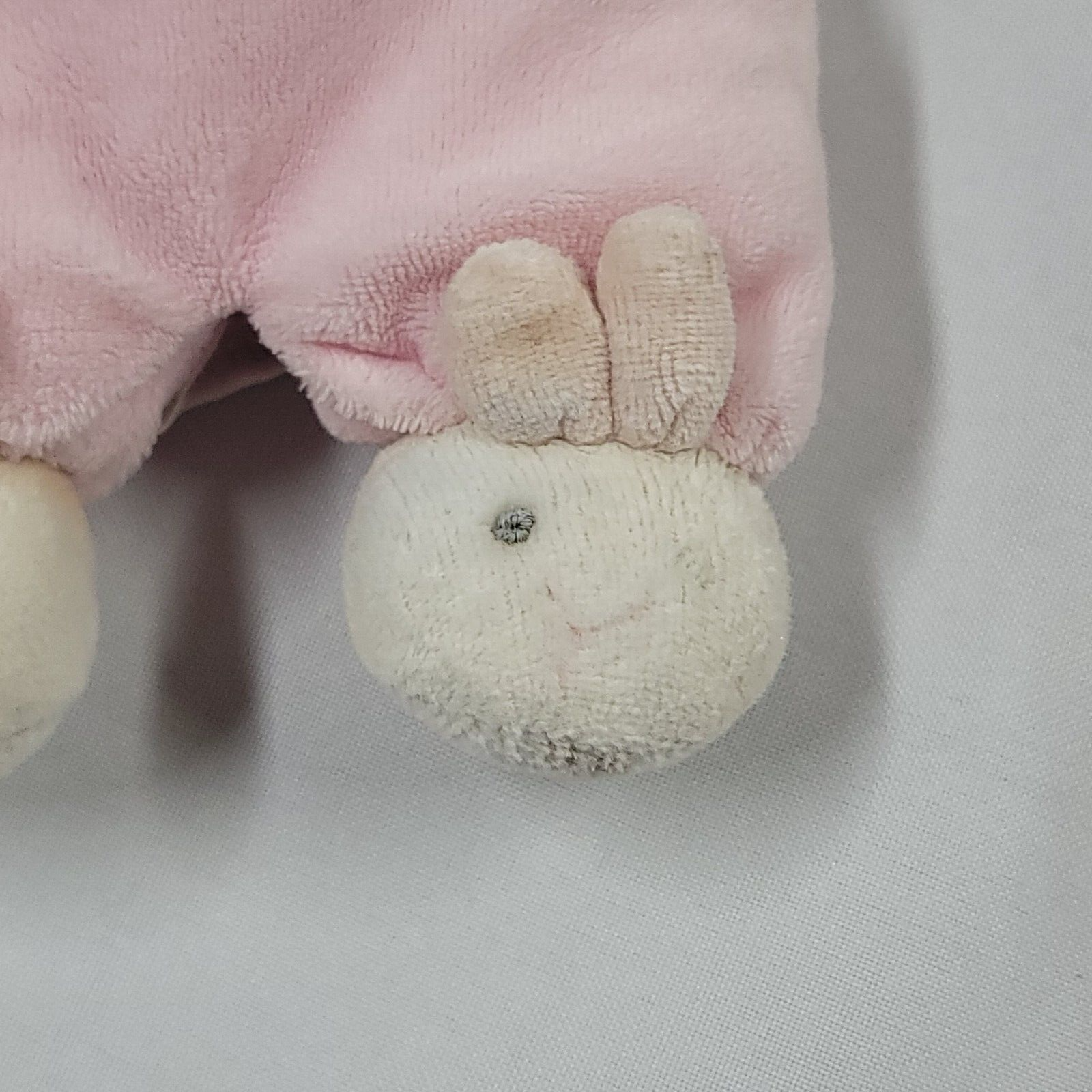 Used - poor condition. There is discoloration of the bows, bunnies are missing eyes, there is some light staining that did not come out in the wash (has been recently laundered and is clean). We wanted to still offer this up for sale since it's vintage from the early 2000s and very hard to find, and someone might be sentimental about it. Ships from a smoke-free and pet-free warehouse. 100% Money back guarantee.