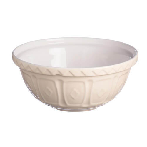 The Mason Cash Cream 29cm mixing bowl is perfect for bread, cake, cookie, pastry and pudding mixes. Part of the Mason Cash Coloured Mixing Bowls range this bowl adds a modern twist and provides a splash of colour to the original mixing bowl design. Made from earthenware.