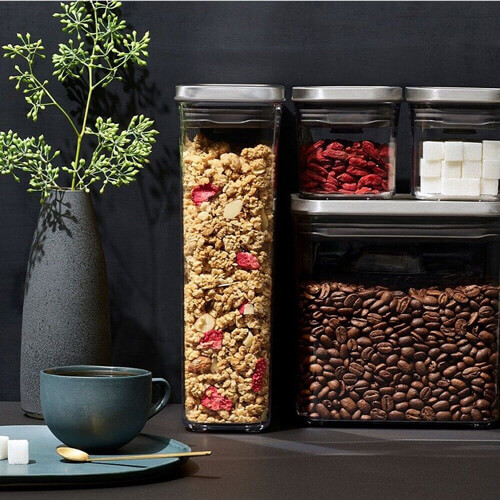 Airtight, space-efficient design keeps dry foods fresh and your pantry organised