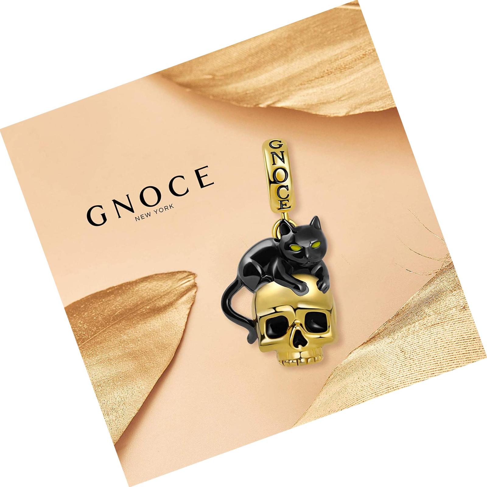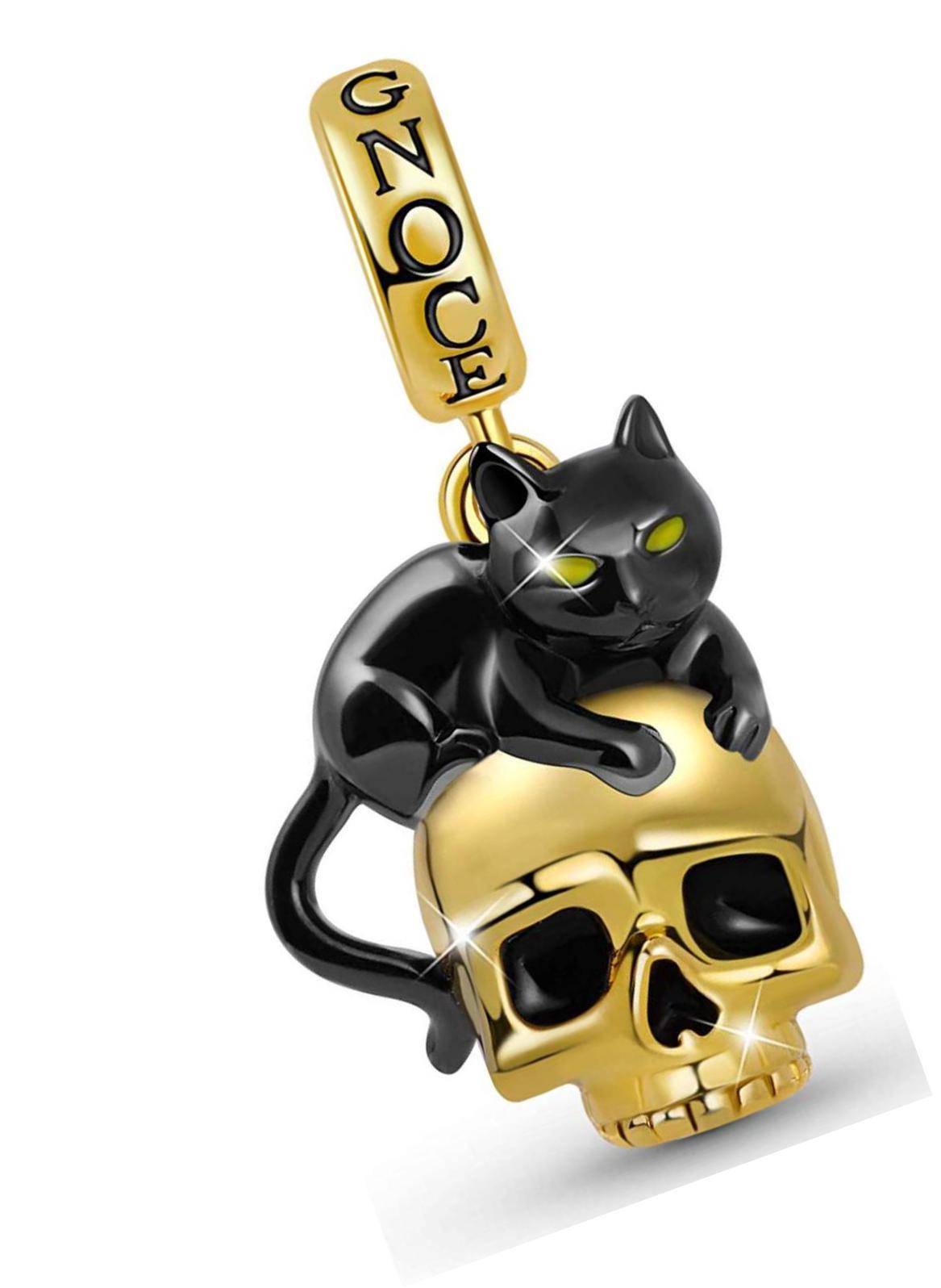 Black Cat with Skull Pendant Charm Sterling Silver Fit