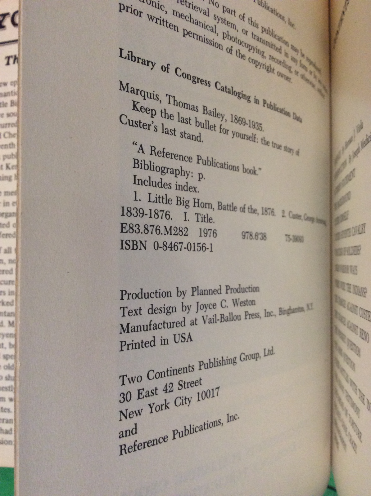 KEEP THE LAST BULLET FOR YOURSELF by THOMAS B. MARQUIS - hardcover