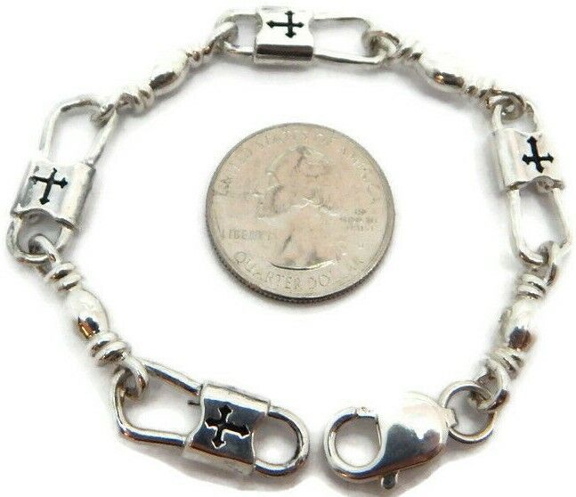 Hand crafted, ACTS (fishers of men) .925 Sterling Silver EXTRA LARGE LINK bracelet Budded Cross Design, approximately weight, 7 inches 23 grams. 8 inches 26 grams and 9 inches 29 grams. We have been in the jewelry business for over 30 years. We do custom work to our client?s wishes. This exquisite bracelet is manufactured by us with a 100% satisfaction guarantee or your money back. If any questions feel free to ask.