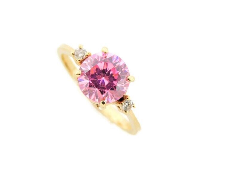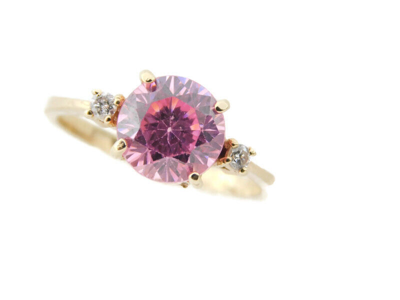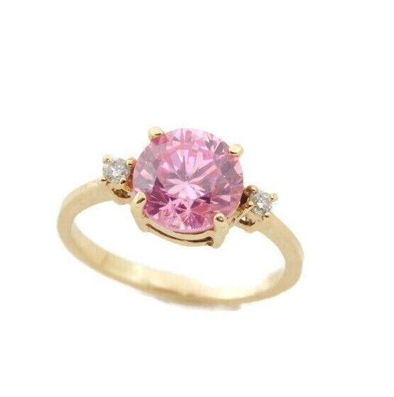 Ring Pink Stone with a total of 0.06 Point Diamonds 14k Yellow Gold. We provide free sizing for sizes 1-10. For any other sizes,