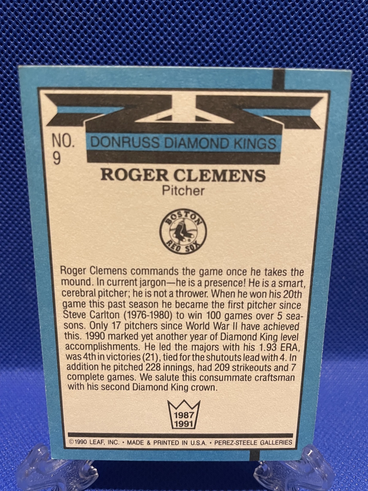 Roger Clemens 1990 Donruss Diamond Kings Baseball Card # 9