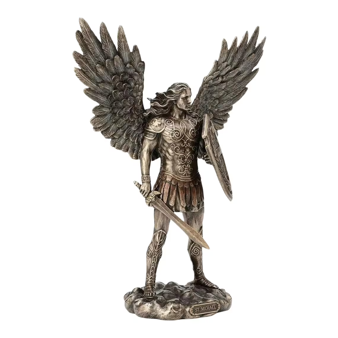 Saint Michael Archangel with Battle Shield and Sword Angel Bronze Finish 19 cm