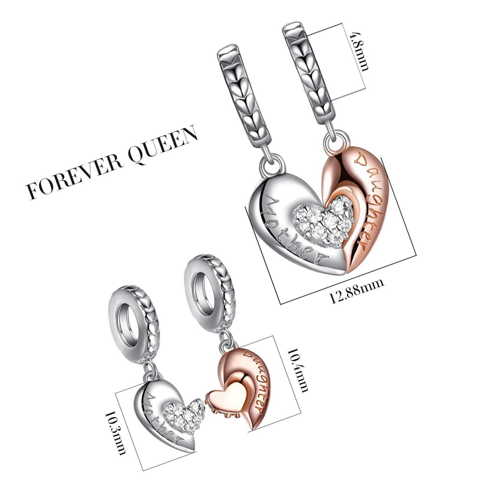 FOREVER QUEEN Mom Mother Daughter Heart Love Charms Dangle