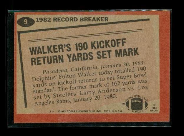 Vintage 1983 TOPPS RECORD BREAKER Football Trading Card #9 FULTON WALKER Miami Dolphins