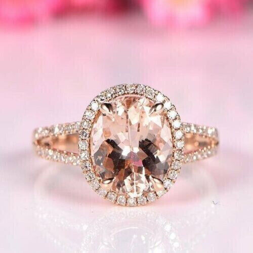 3.20Ct Oval Cut Simulated Morganite Halo and similar items