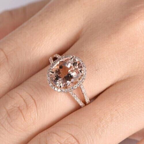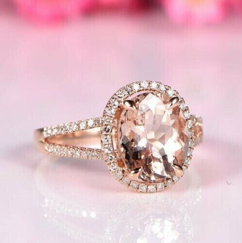 3.20Ct Oval Cut Simulated Morganite Halo Engagement Ring 14K Rose Gold Plated