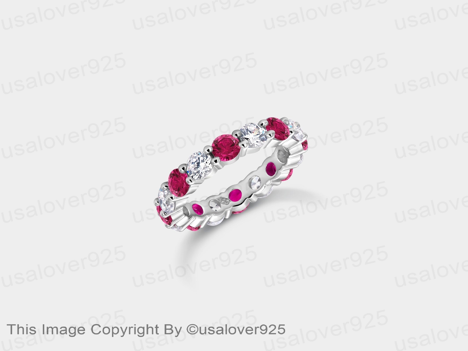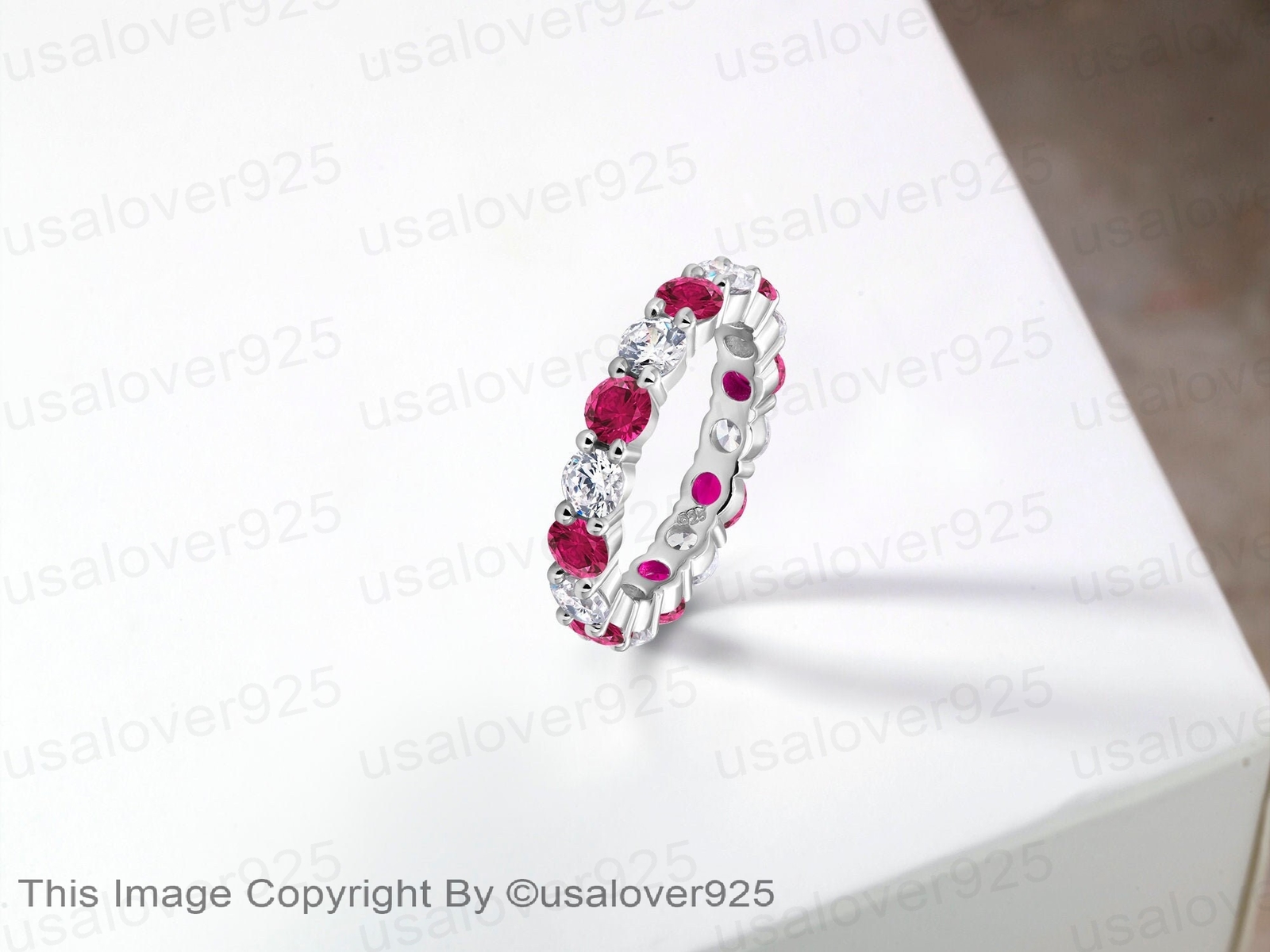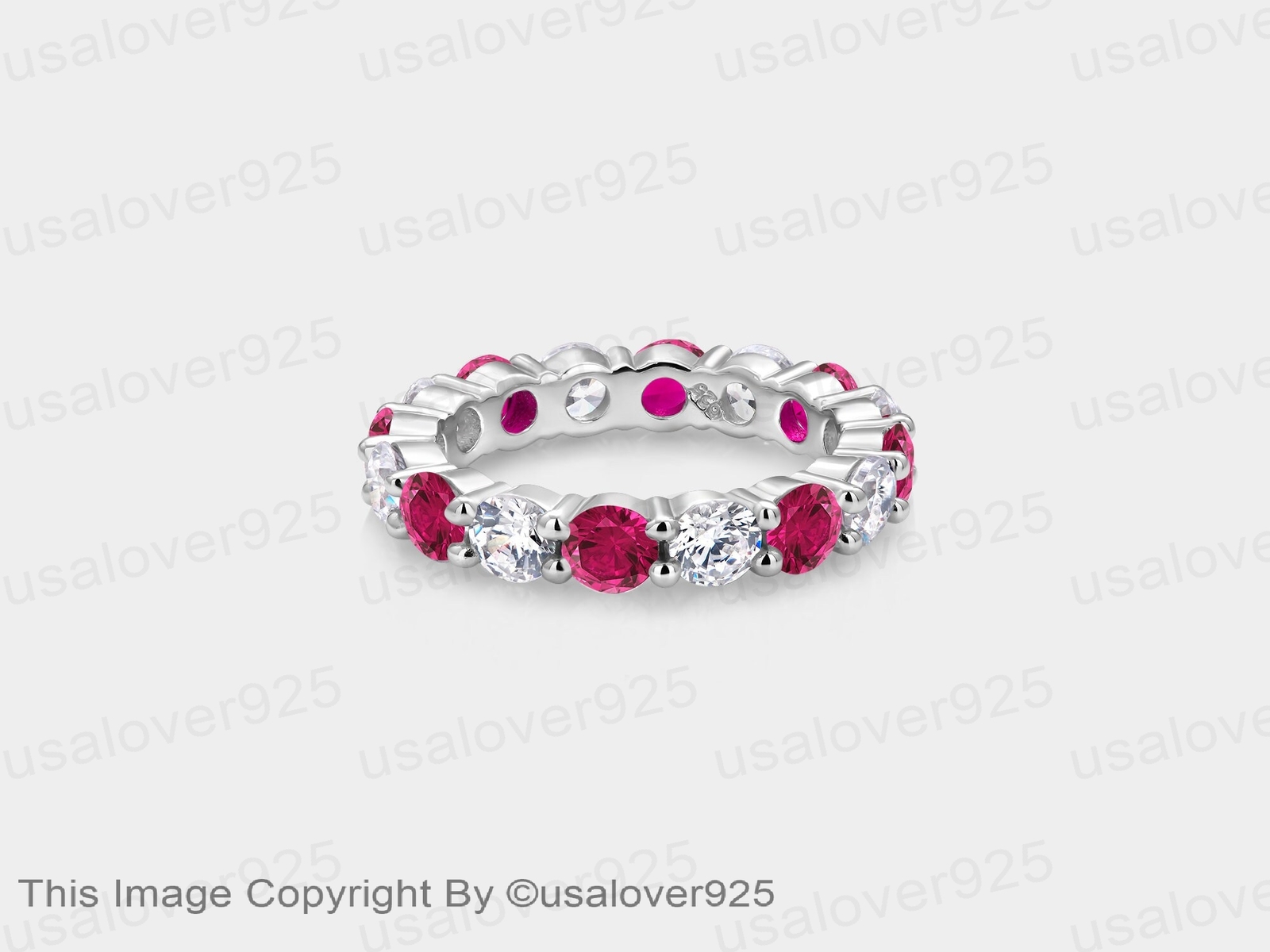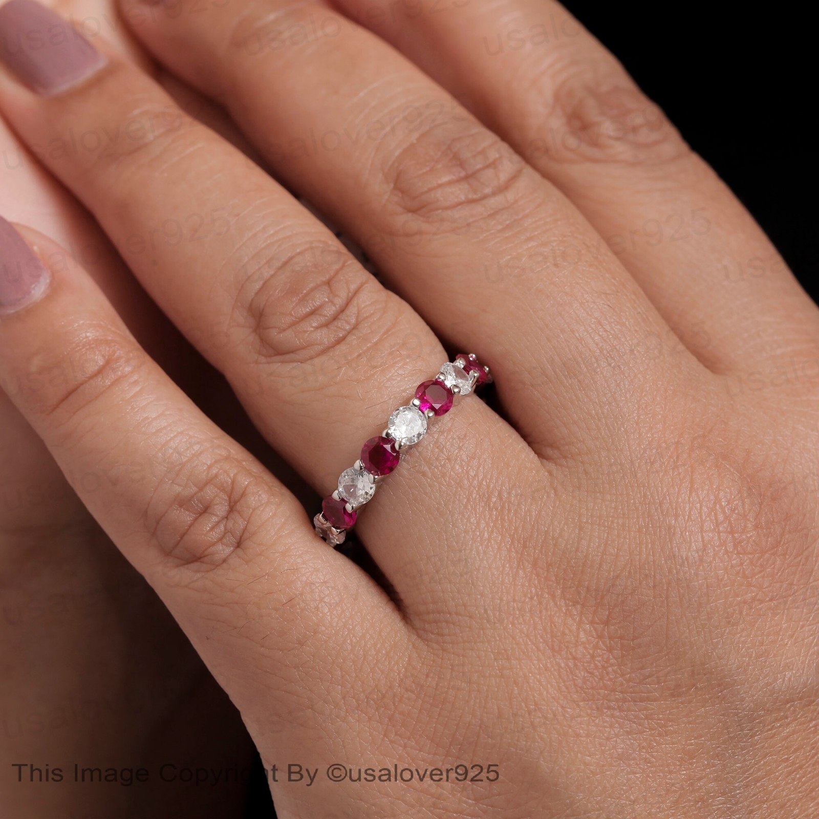 Ruby And CZ Diamond Stone Sterling Silver Full Eternity Women Band Ring Jewelry