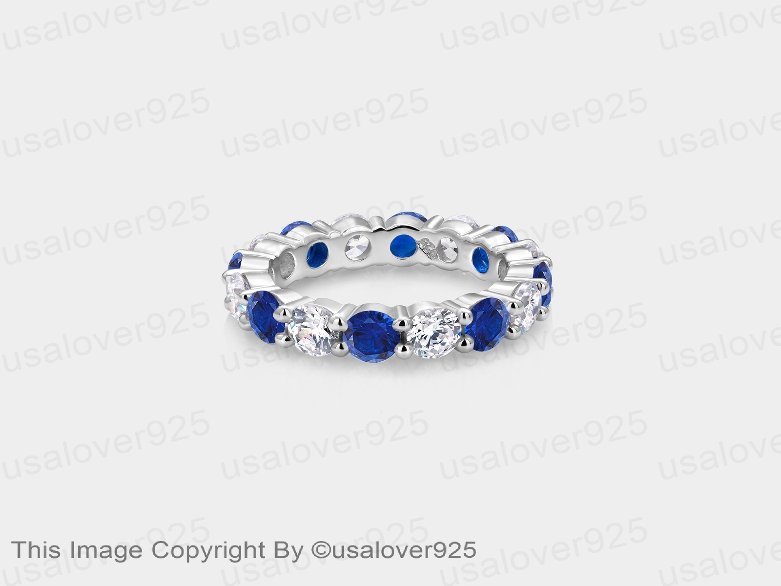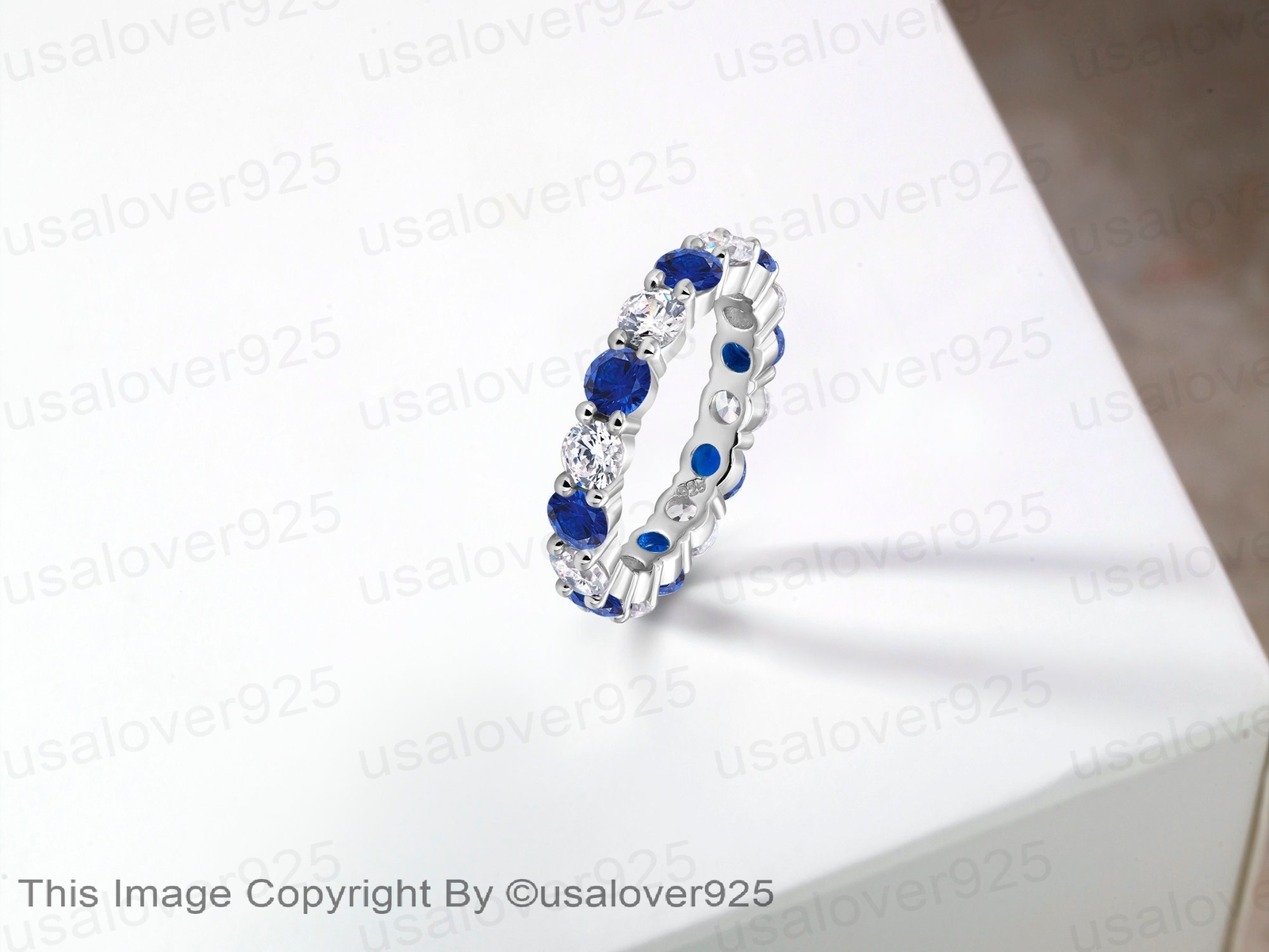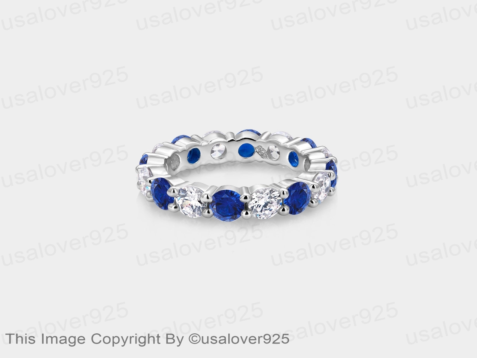 Sapphire And CZ Diamond Stone Sterling Silver Full Eternity Women Band Ring