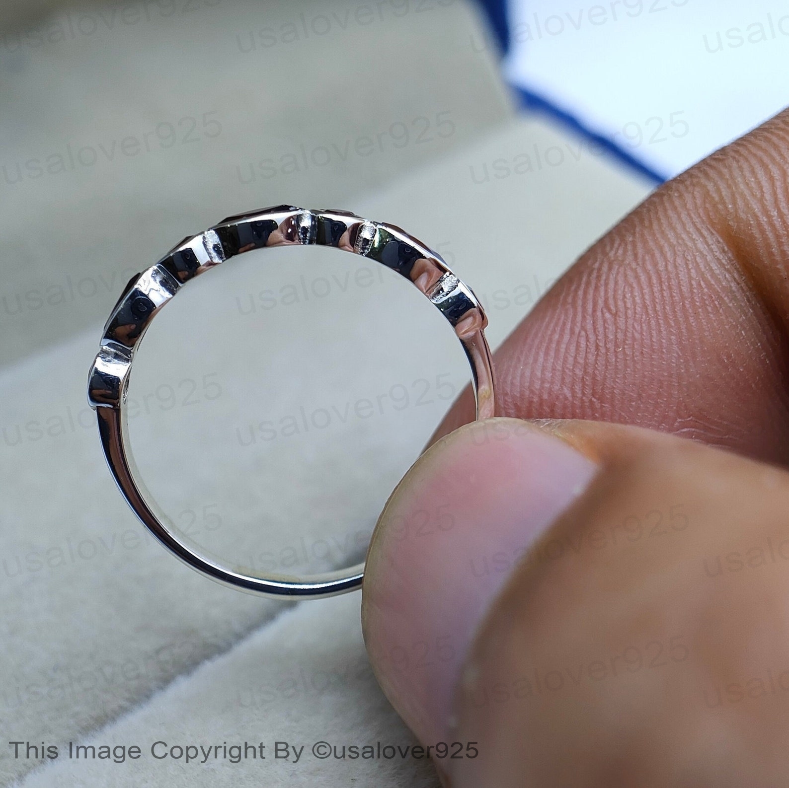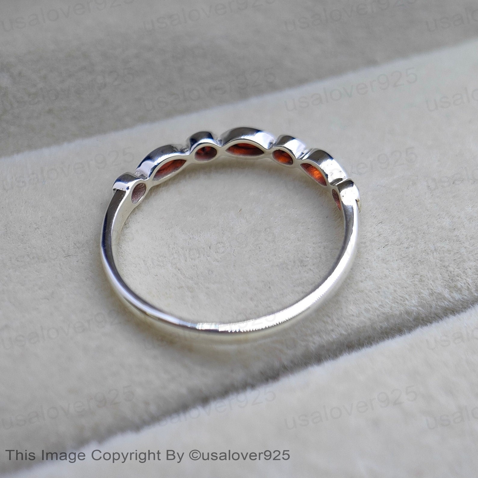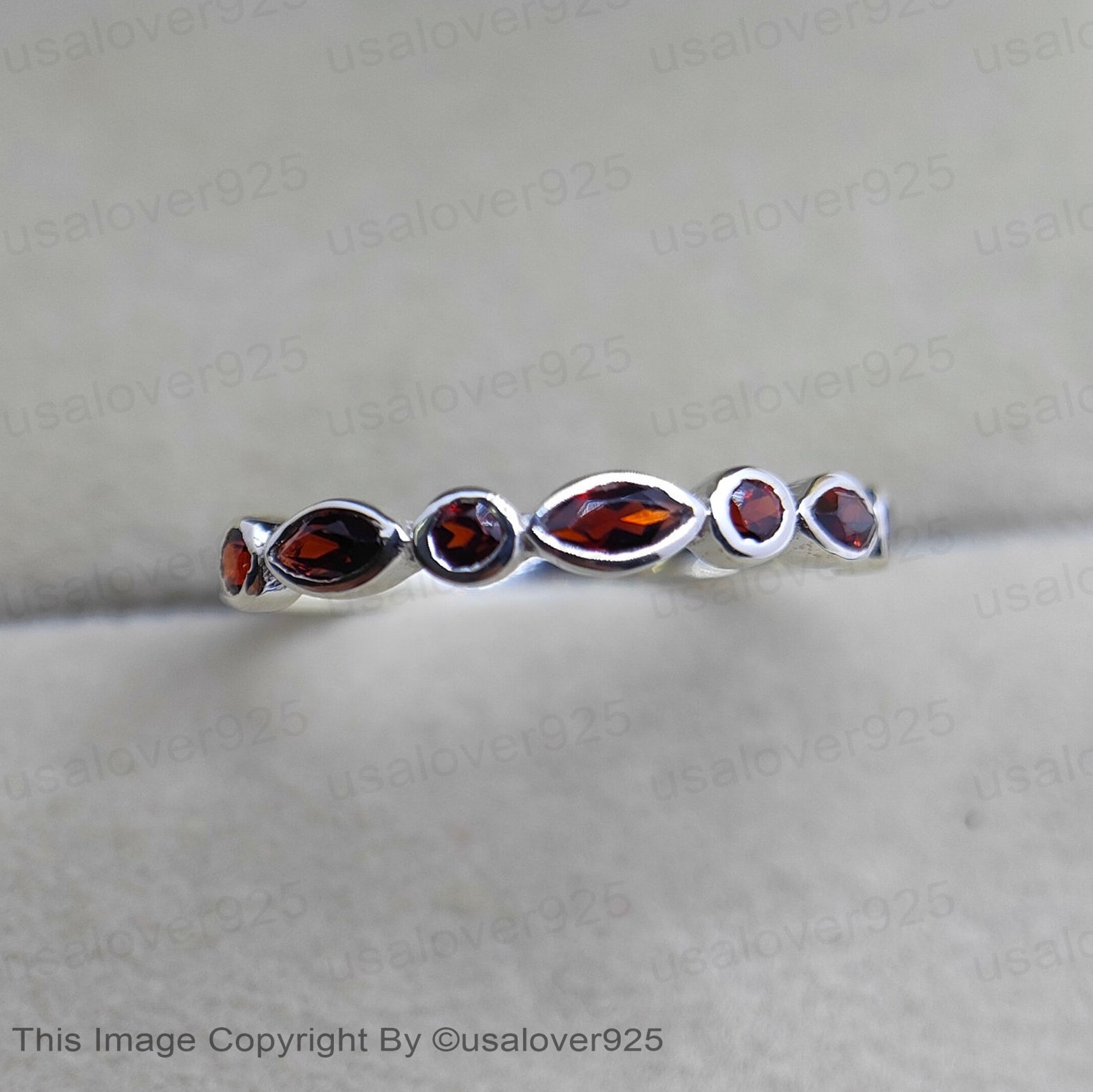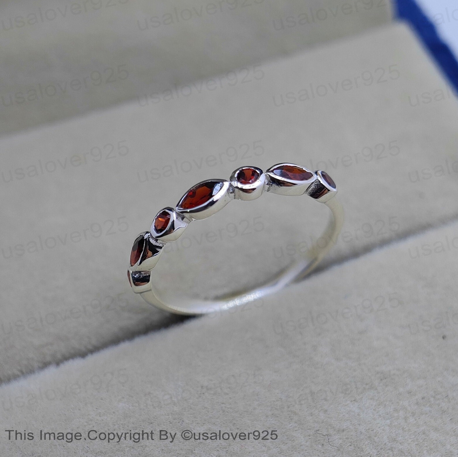 Unique Red Garnet Gemstone Sterling Silver Modern Women Band Ring Jewelry