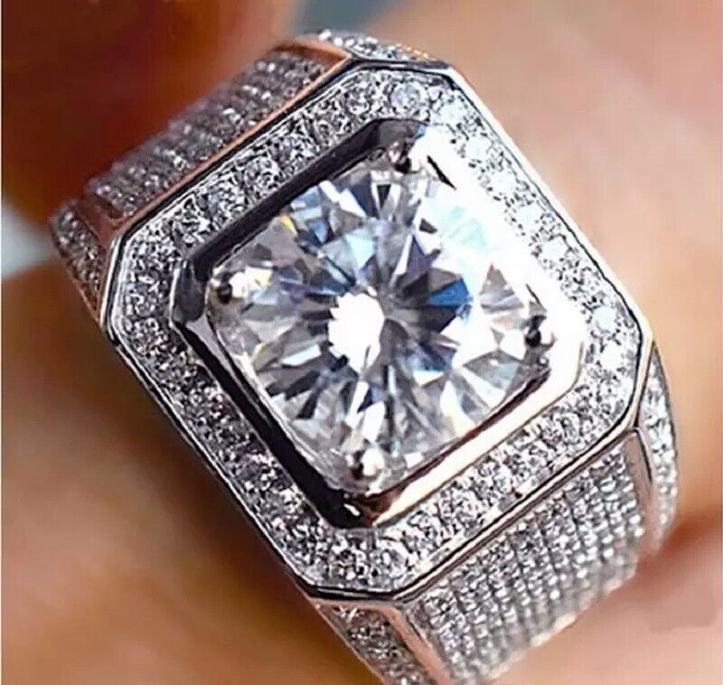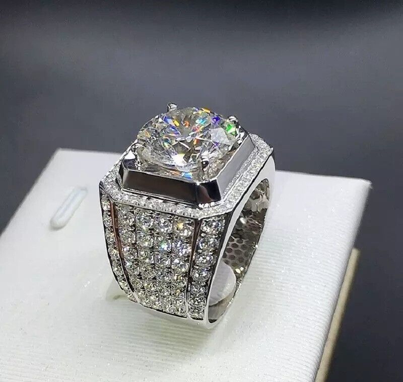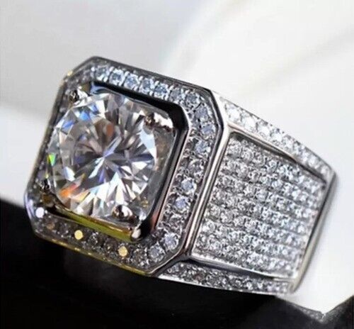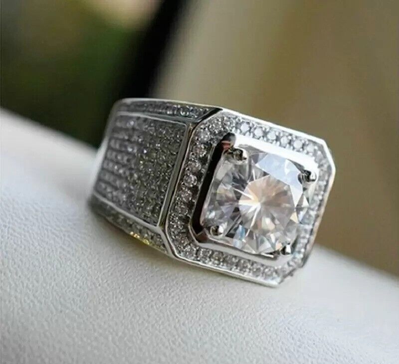 4Ct Round Cut Moissanite Engagement Halo Men's Gift Ring 14k White Gold Plated
