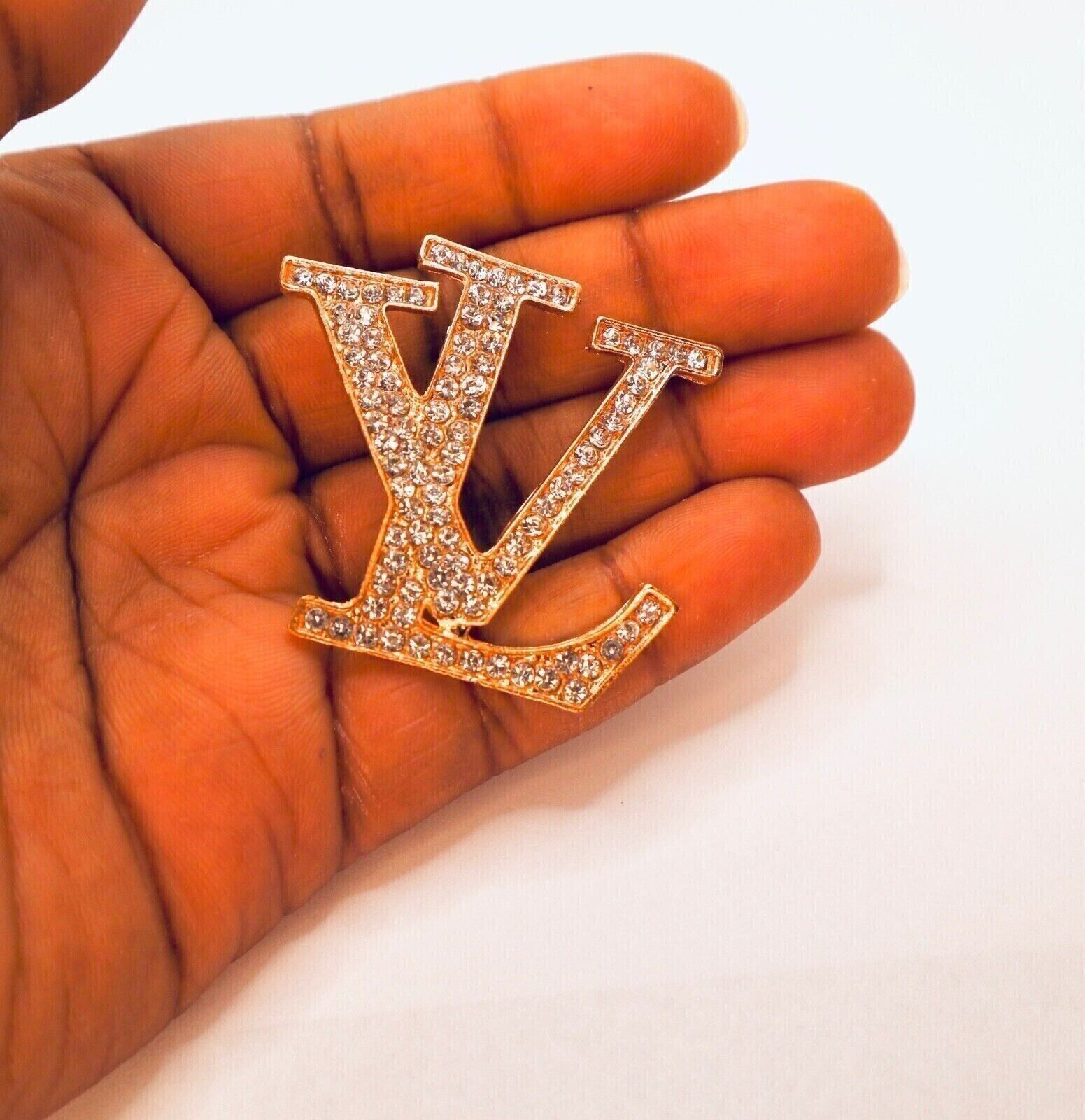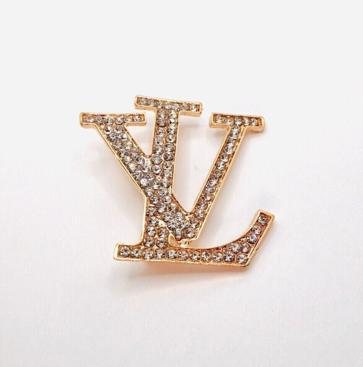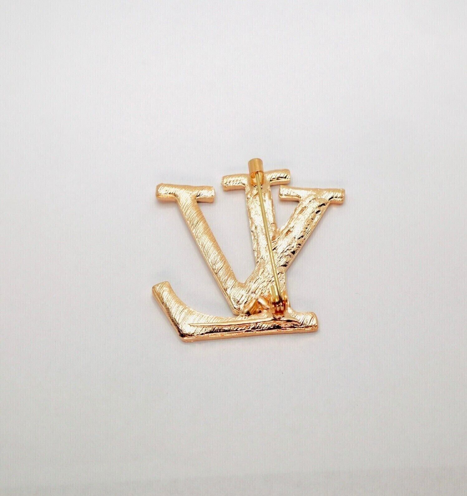 3.20Ct Round Cut Moissanite Letter "VL" Brooch Pin 14K Yellow Gold Plated