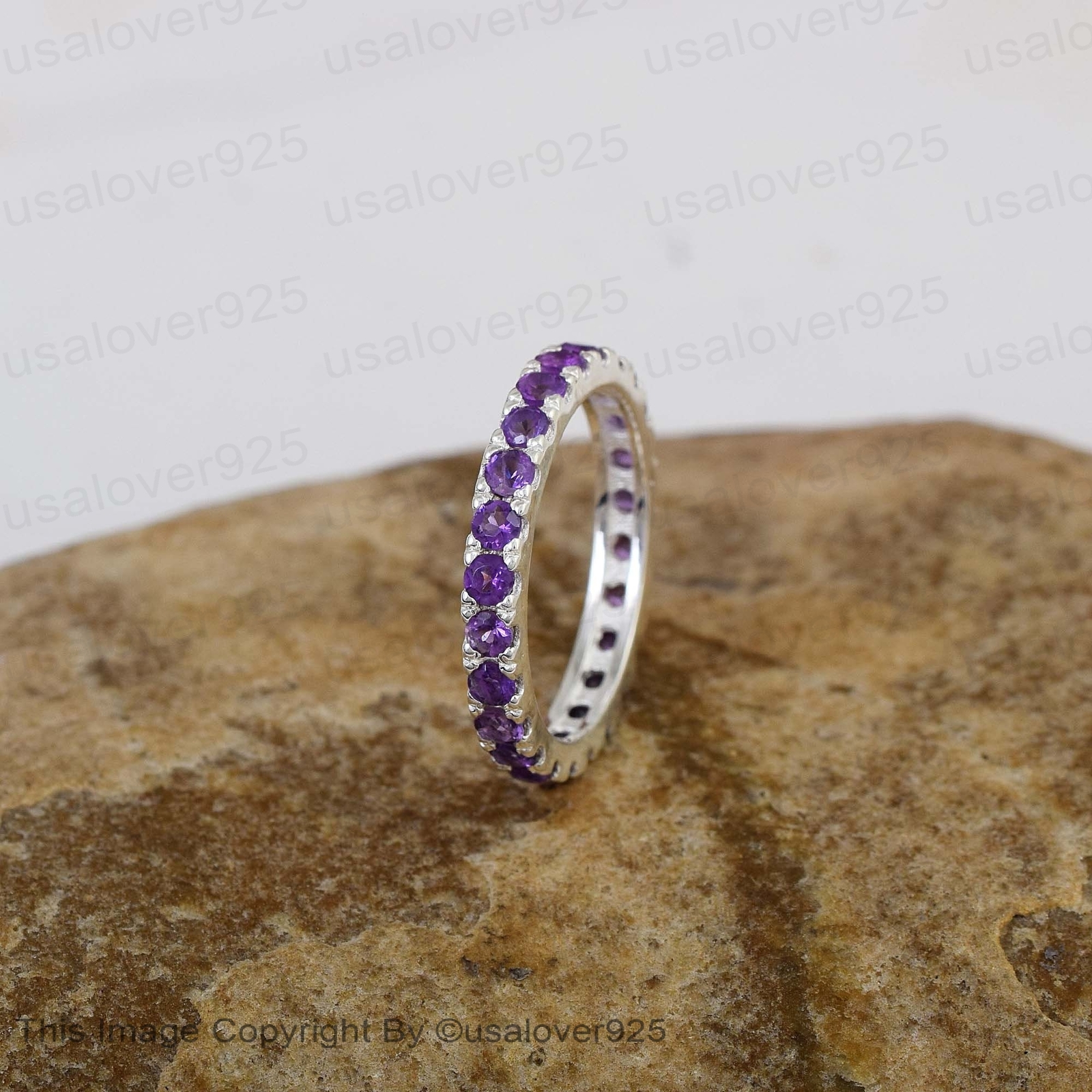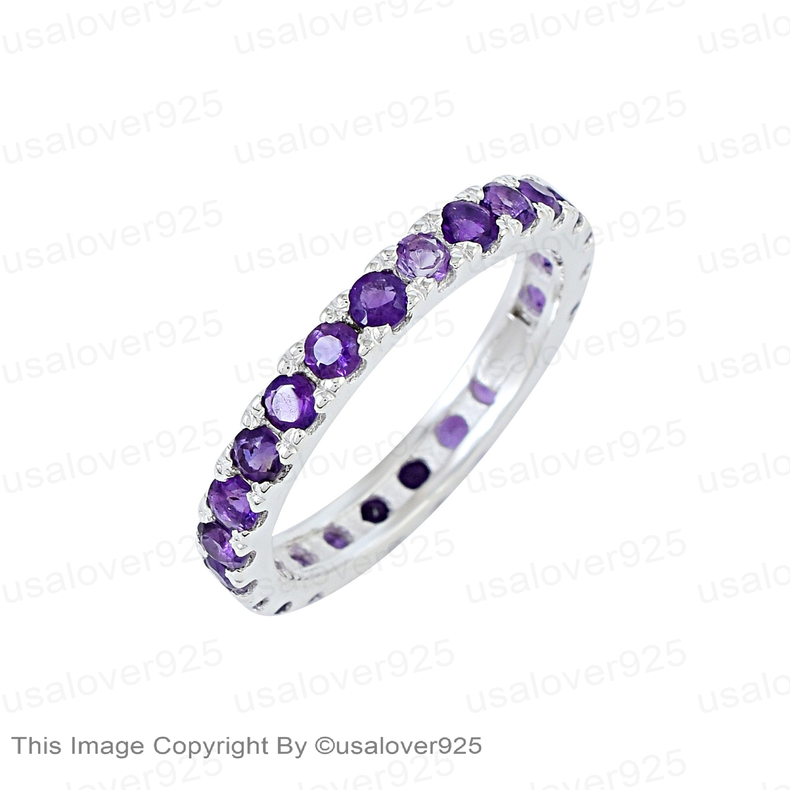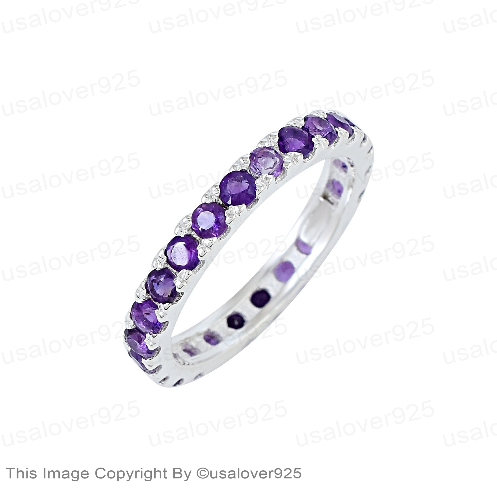 Purple Amethyst Round Gemstone Sterling Silver Full Eternity Women Band Ring