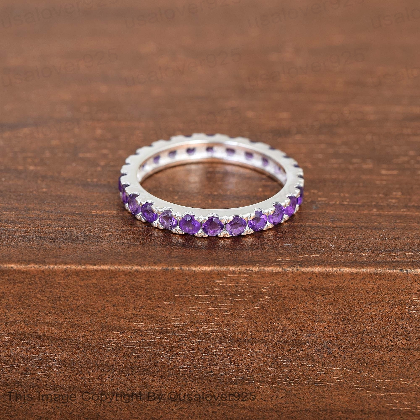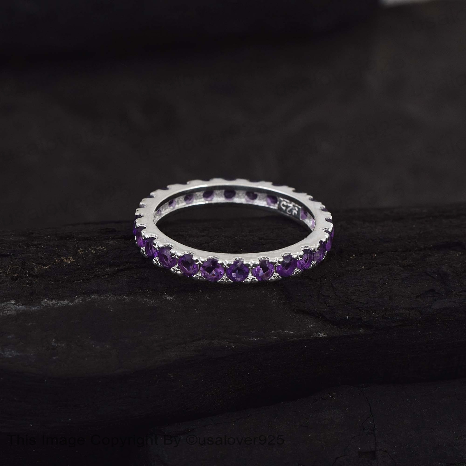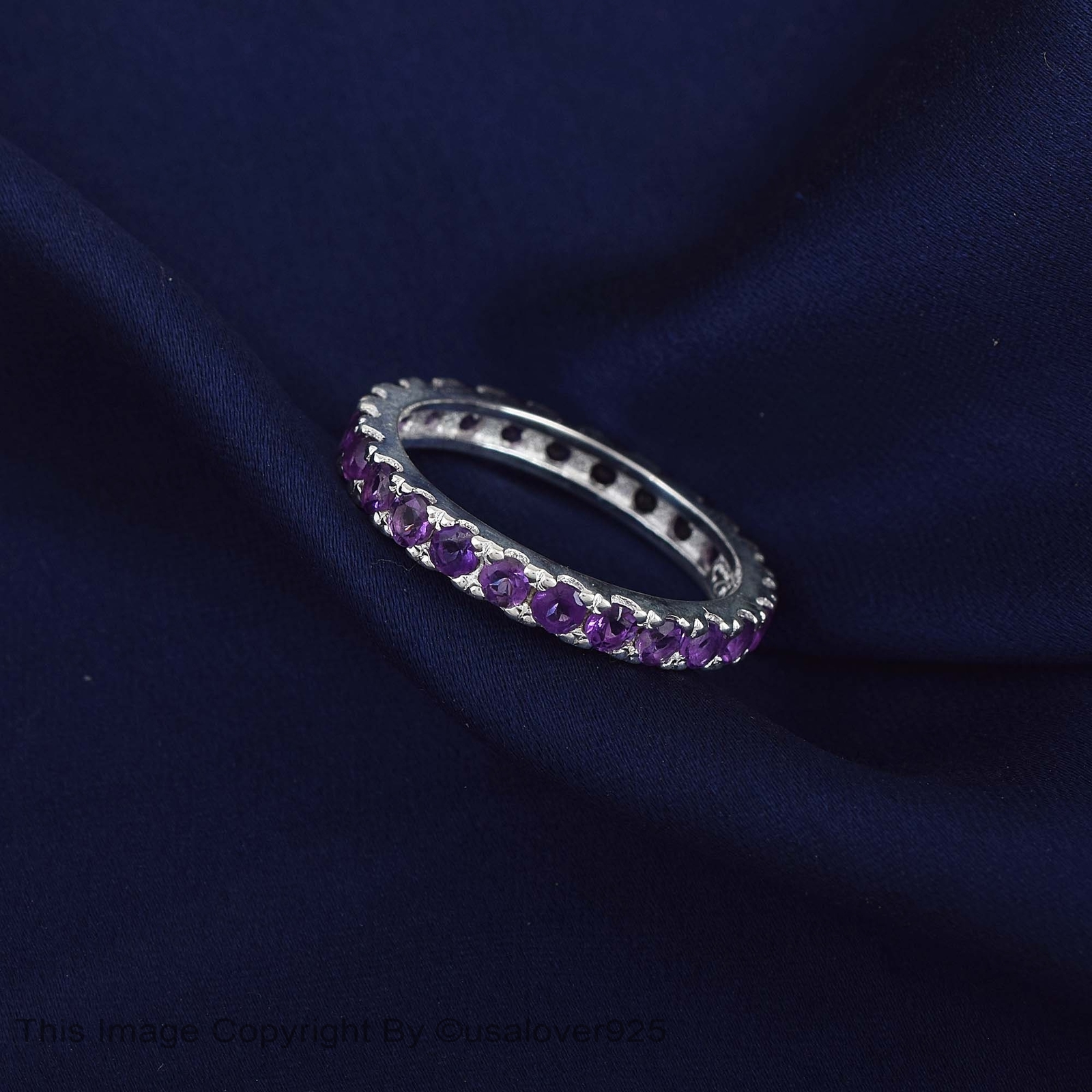 Purple Amethyst Round Gemstone Sterling Silver Full Eternity Women Band Ring
