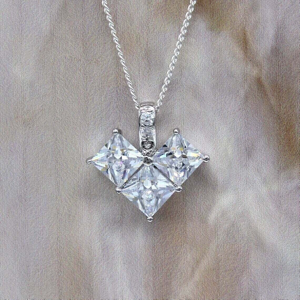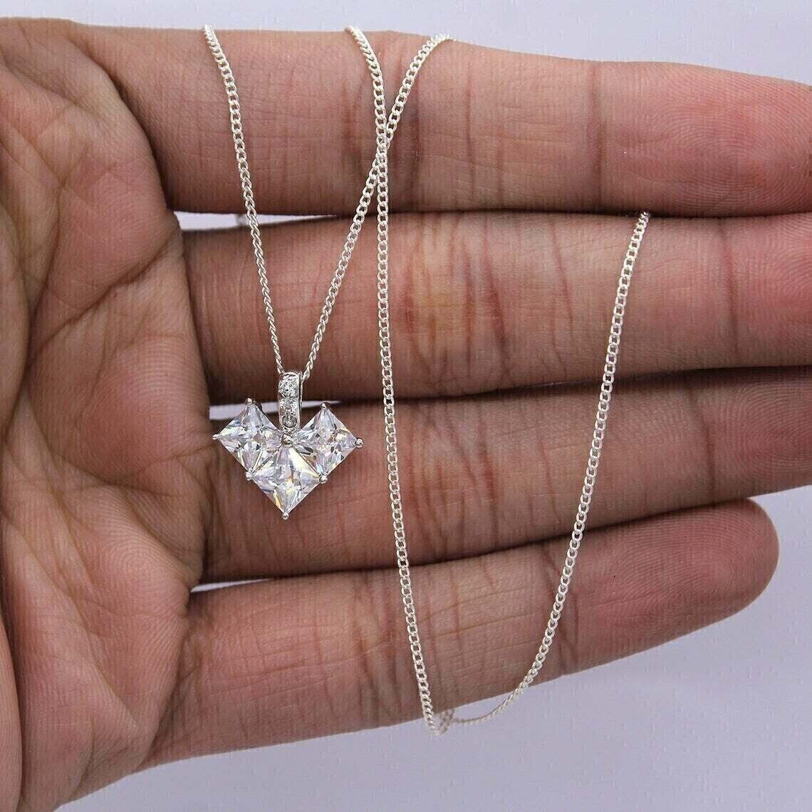 2Ct Princess Cut Moissanite Three Stone Pendant 14k White Gold Plated Silver