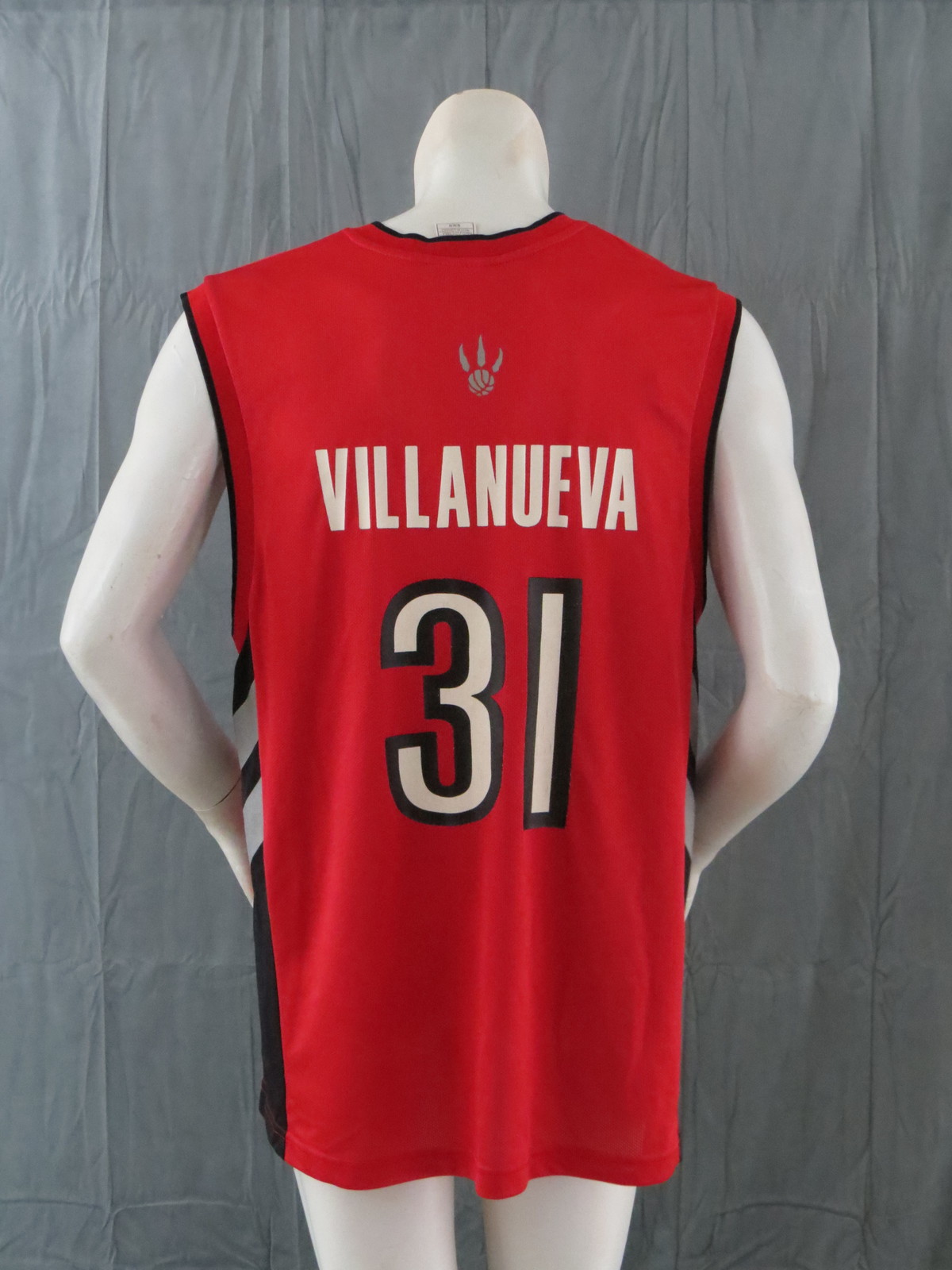 Up for sale is a retro Toronto Raptors jersey by Reebok. It has a red base colour with silver and black trim. The front of the jersey has the number 31 and raptors screened. The NBA and Reebok logos are stitched on the upper left side. The back of the jersey has Villanueva and the number 31 screened on. What a great jersey do not miss out on it.