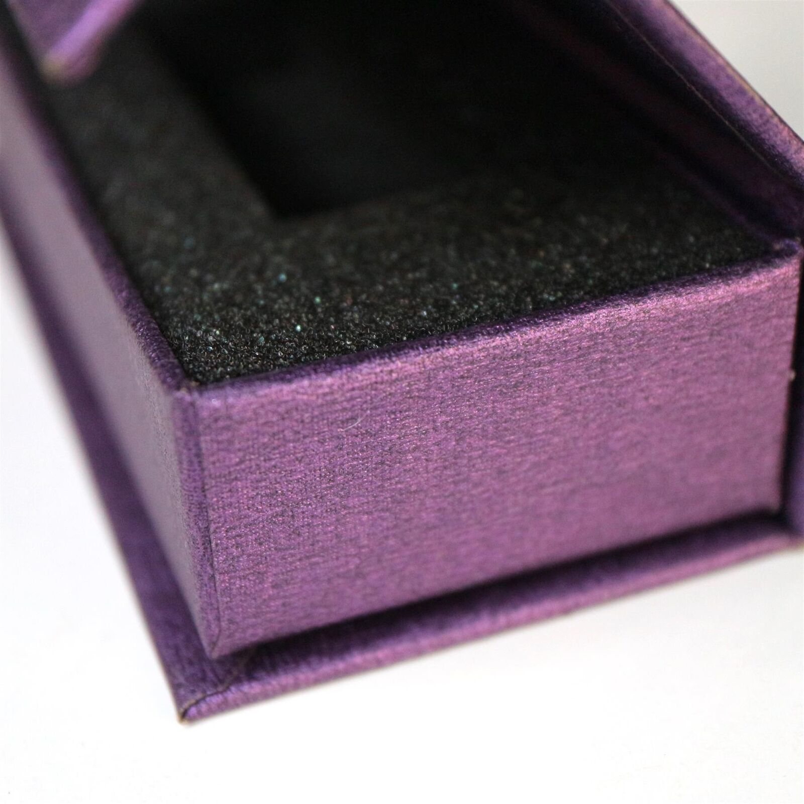 Dimensions L x l x H : 101 mm x 51 mm x 28 mm. Decoupe en mousse amovible L x l : 53 mm x19 mm. Couleur : Mauve Clair