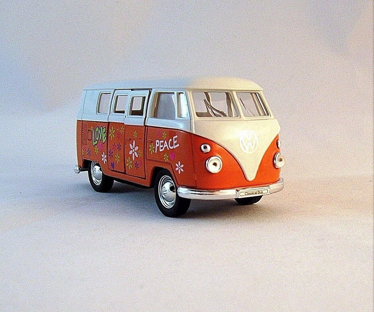1963 VOLKSWAGEN T1 MINIBUS ARANCIONE/BIANCO WELLY 1/38 AUTO IN MINIATURA...