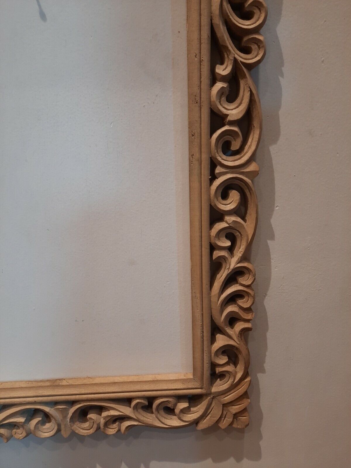 Marco de espejo de madera de teca de color natural tallado a mano con forma...