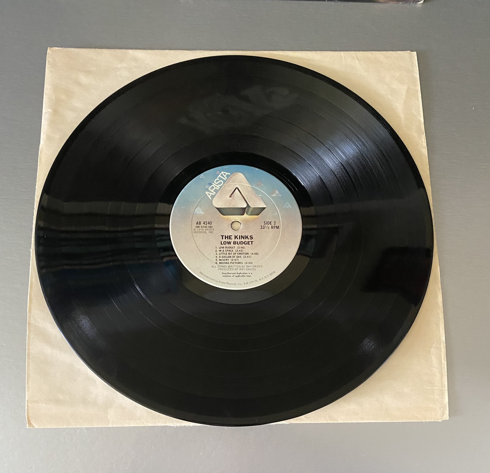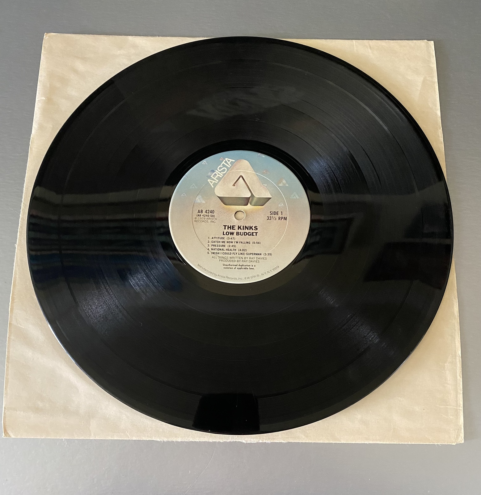 This listing features a Vintage Vinyl Album; The Kinks Low Budget 1979 from. Arista Records.