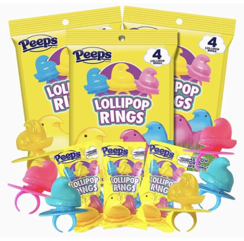 Peeps 4pk Lollipop Rings are a great basket stuffer item! Each bag comes with 4 lollipop rings flavored like marshmallows and shaped like a Peeps Chick. Great Easter basket stuffer.