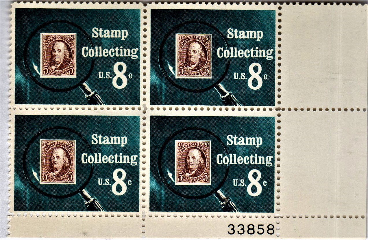 U S Stamp, Stamp Collecting, 8 Cent Stamp, Plate Block of 4 Stamp, 1972
