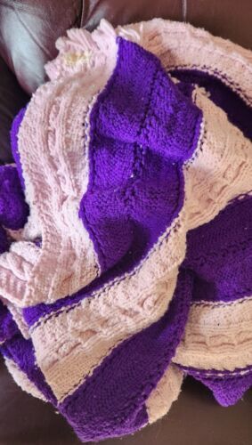 Vintage Purple & Pink Hand Made Crocheted Knit Blanket Afghan Warm Heavy