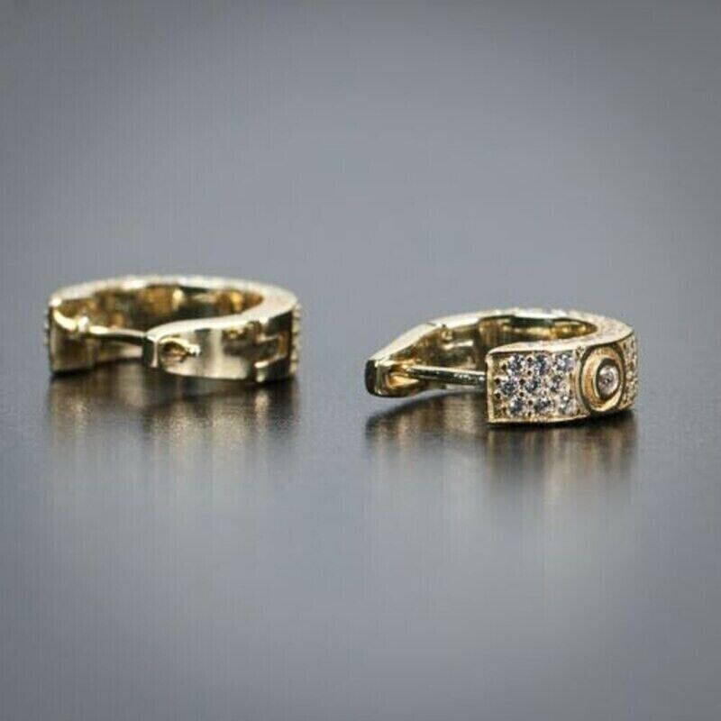 1.20Ct Round Cut Moissanite Huggie Hoop Earrings 14K Yellow Gold Plated