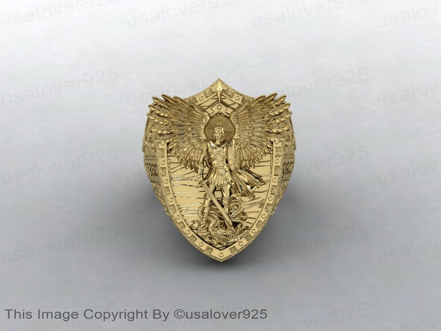 Saint Archangel Michael Dragon Design Yellow Gold Filled Signet Men Ring Jewelry