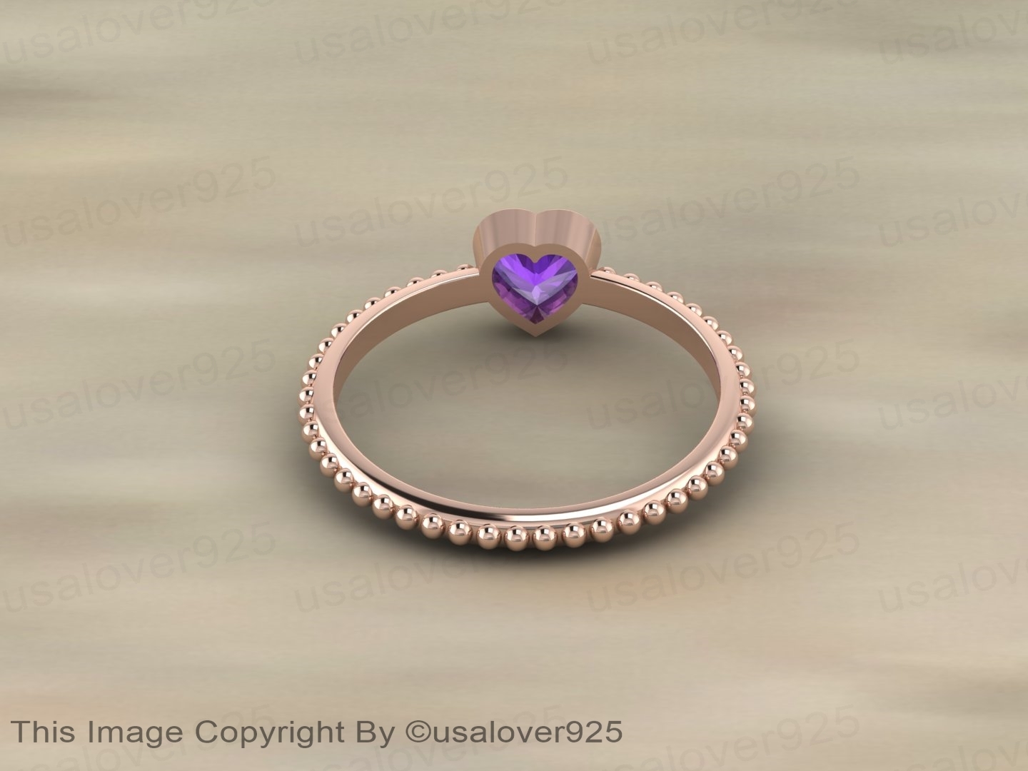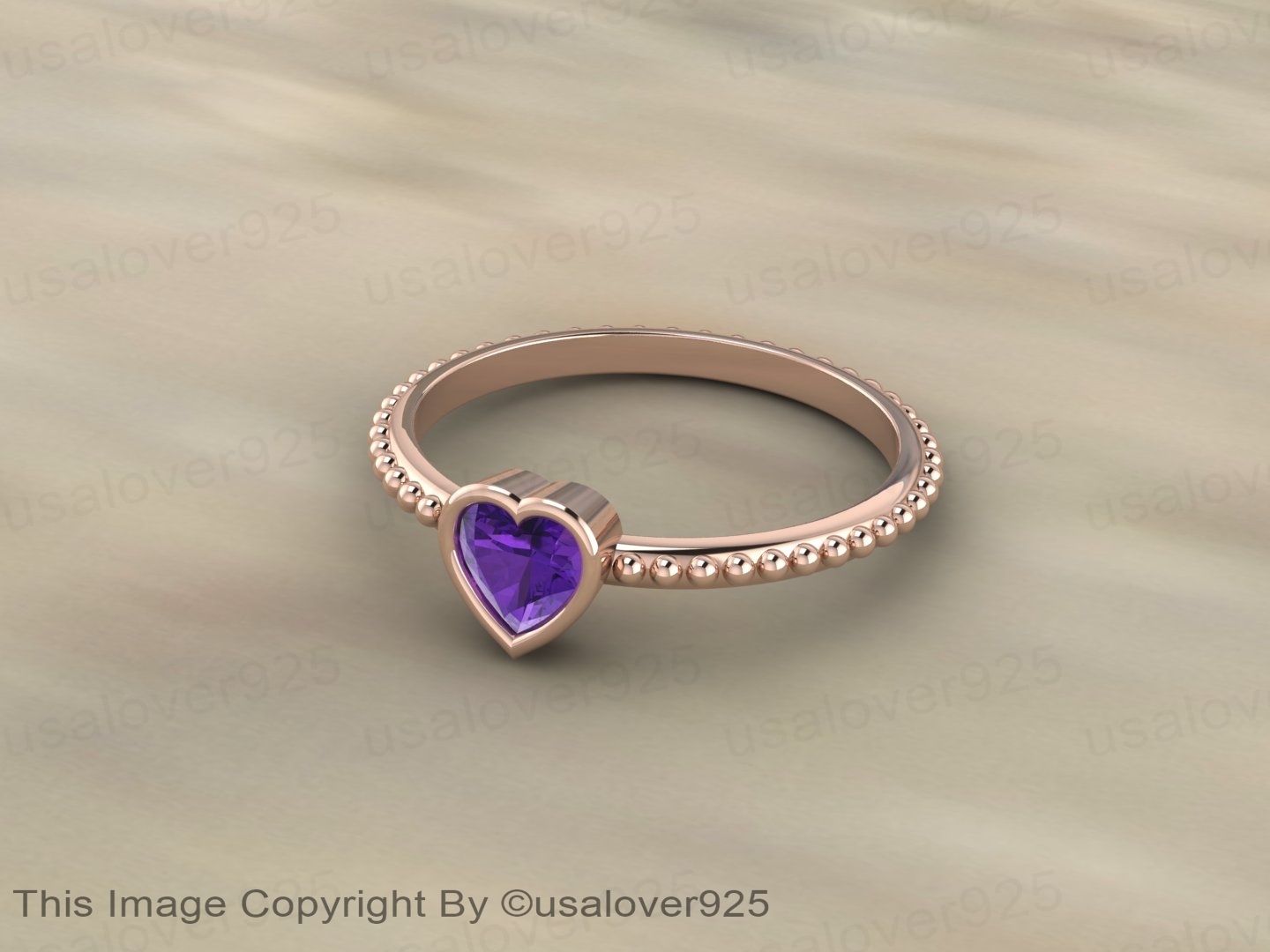 Amethyst Purple Heart Shape Gemstone 925 Sterling Silver Women Ring Jewelry