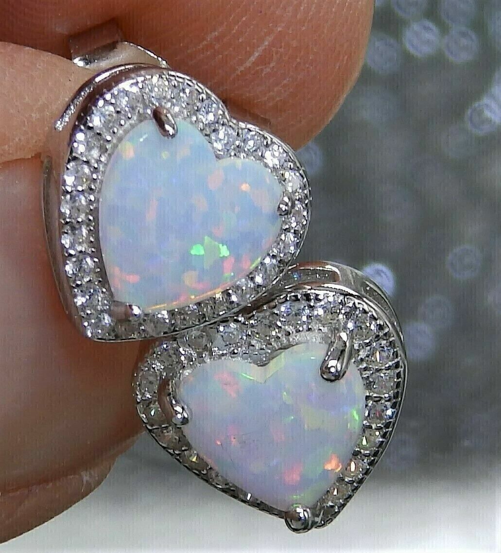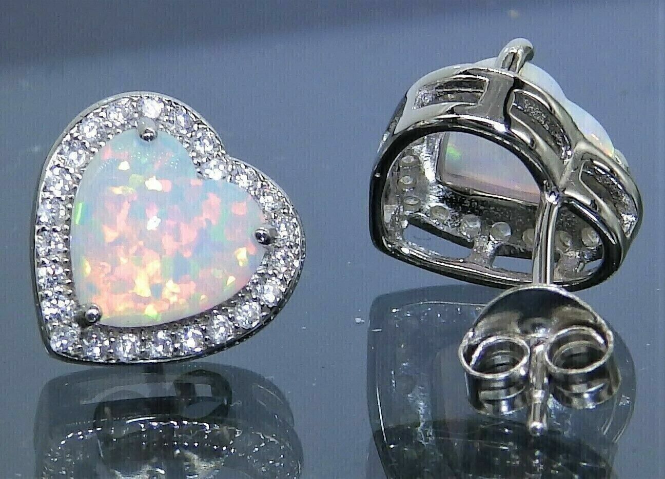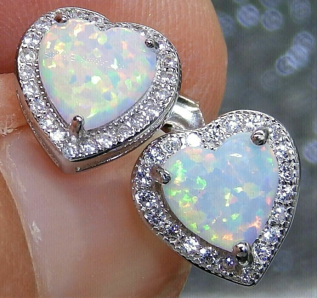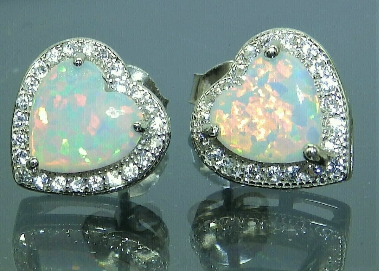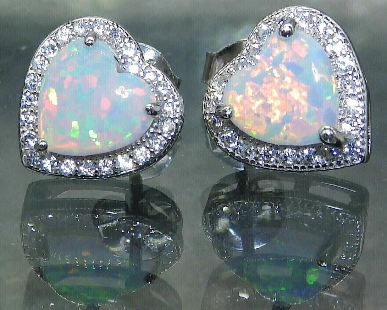 2Ct Heart Cut Simulated Fire Opal Stud Earrings 14K White Gold Plated Silver