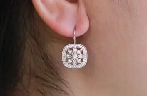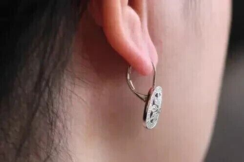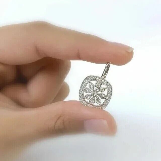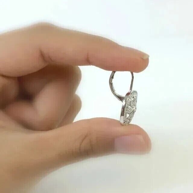 1 Ct Round Cut Moissanite Drop Dangle Earrings 14K White Gold Plated