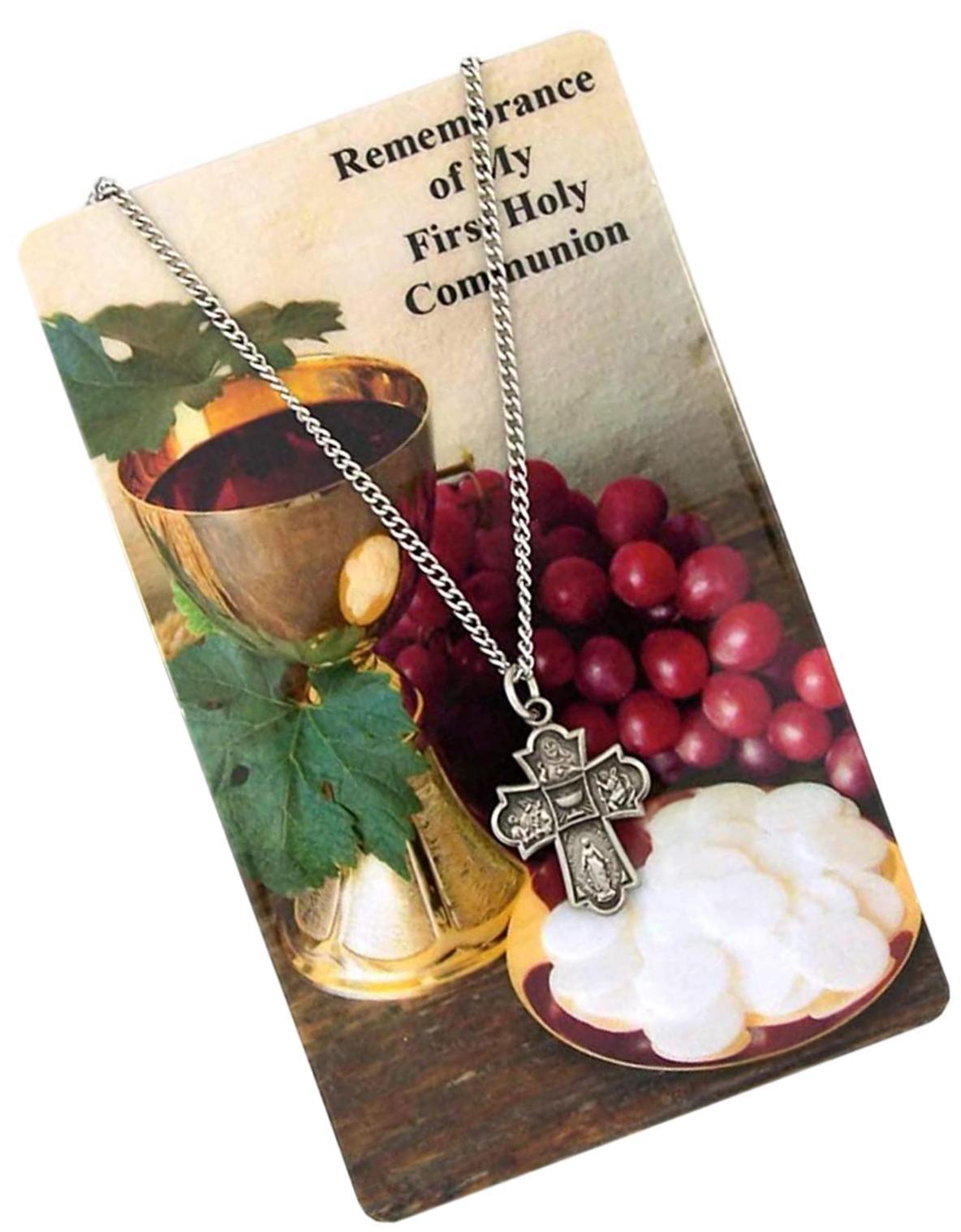 First Communion Necklace with Four Way Cross Pendant on a 18
