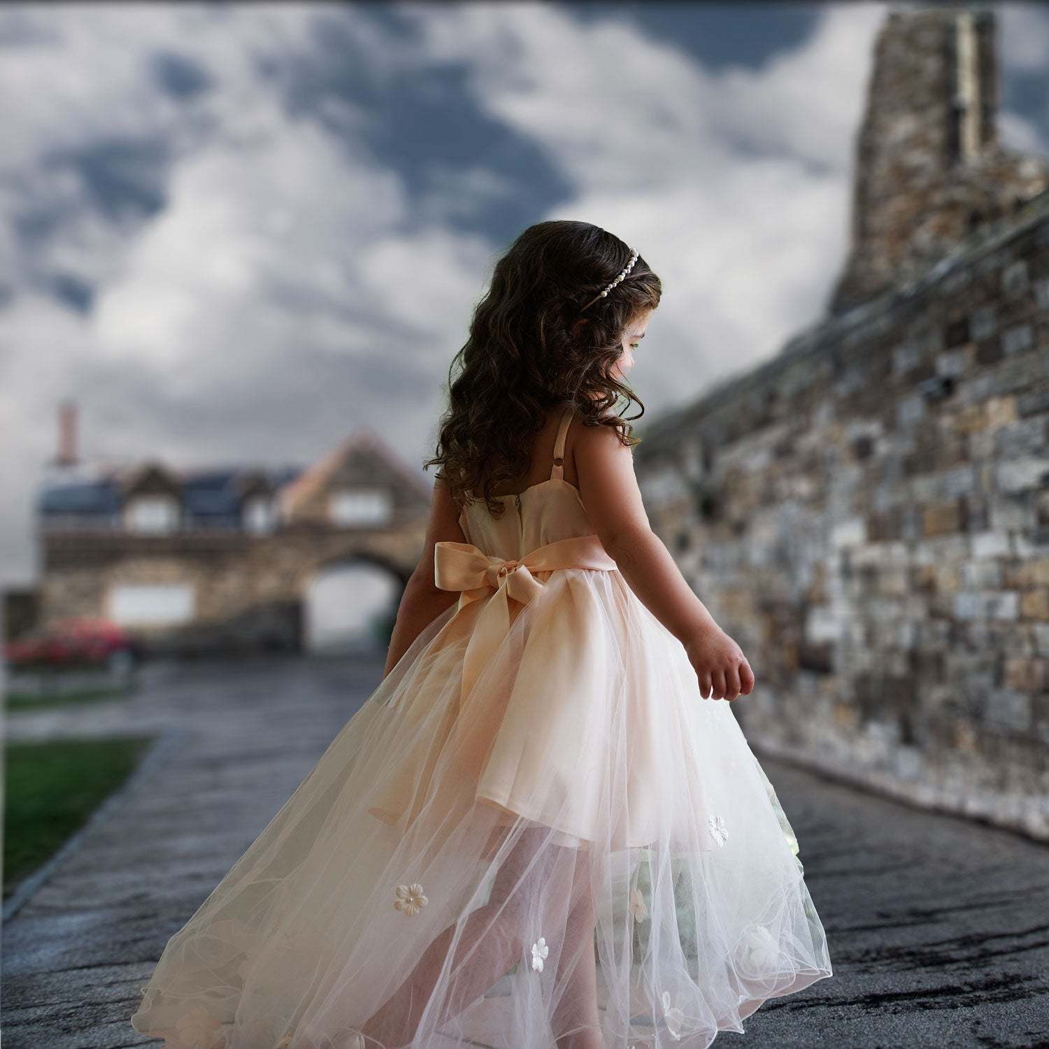 You will light up her day when you dress her in this classic ivory toddler dress. Whether it is for a birthday party, a pageant, or a special holiday event, she will feel as stunning as she looks. As she starts twirling around, the happiness in her eyes lights up the room, and she really feels like a fairytale princess. The Fiona Dress is one of our ivory flower girl dresses that is sure to be a showstopper that will bring happiness to your little girl long after the event is over. Dress-up and afternoon tea time are perfect occasions for this lovely dress, too!