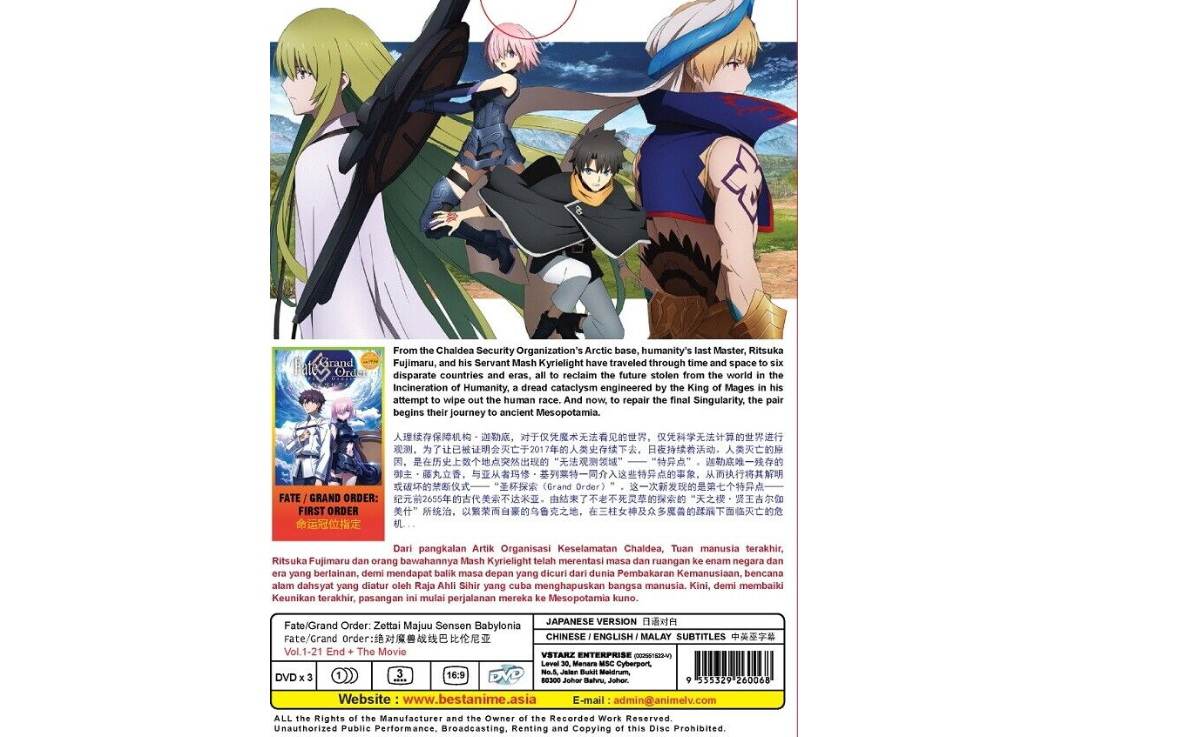 DVD Anime FATE Grand Order: Absolute Demonic Front Babylonia (1-21 End + Movie)
