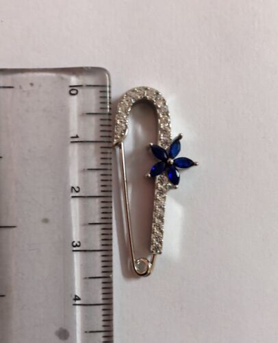 925 Sterling Silver CZ Safety Pin, Brooch, Saree Pin, Hijab Pin, Dupatta Pin #6