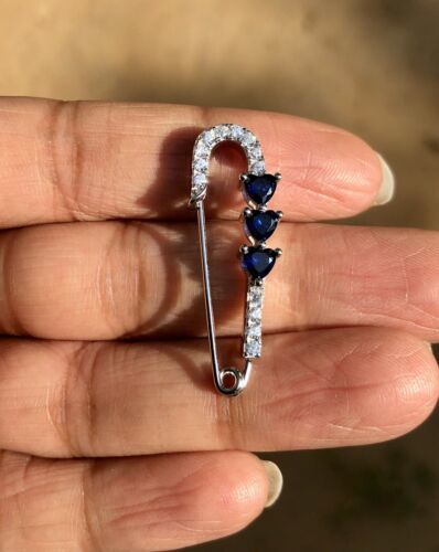 925 Sterling Silver CZ Safety Pin, Brooch, Saree Pin, Hijab Pin, Dupatta Pin #8