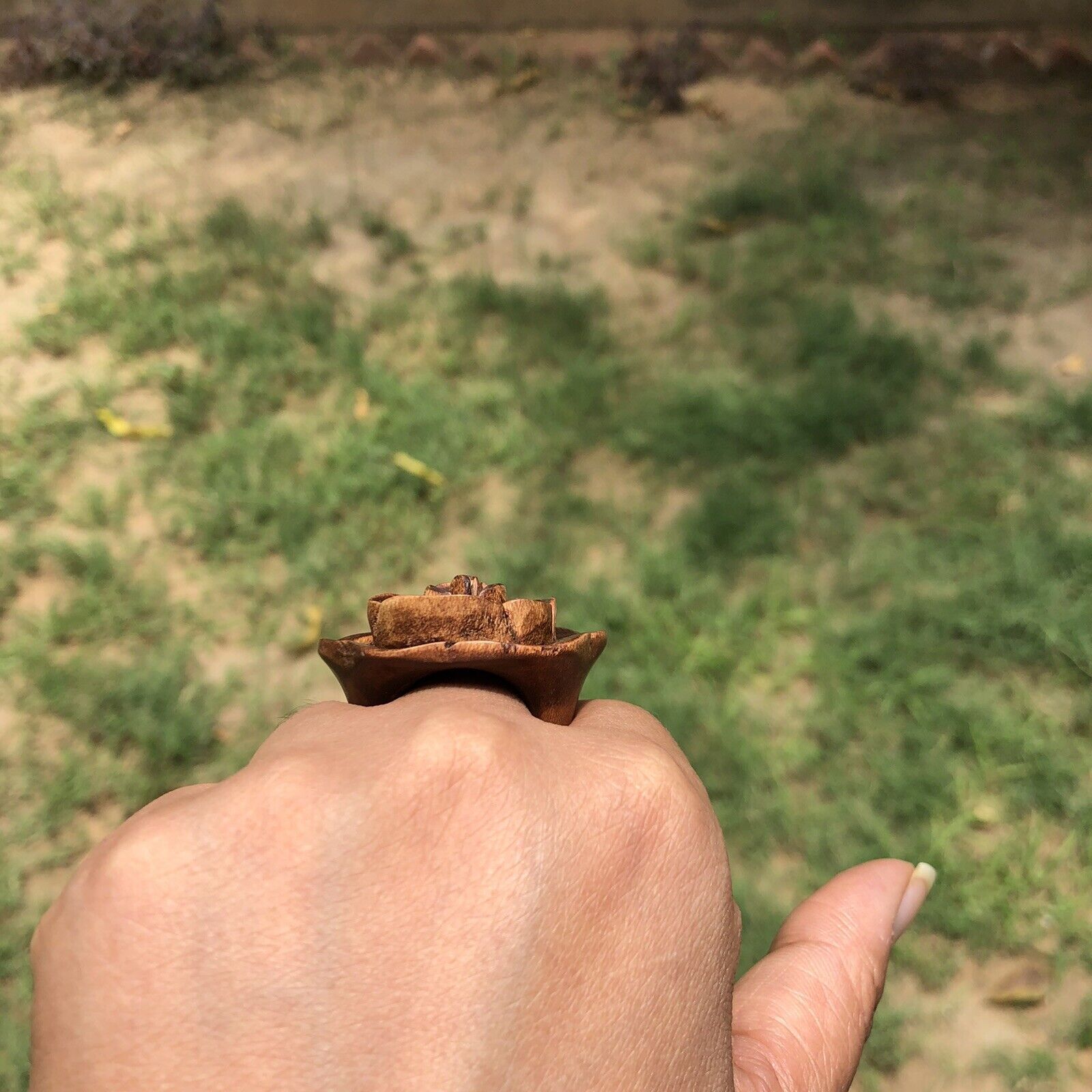 Kadamb Wood Rose Flower geschnitzter handgemachter Ring, 35 mm Durchmesser,...