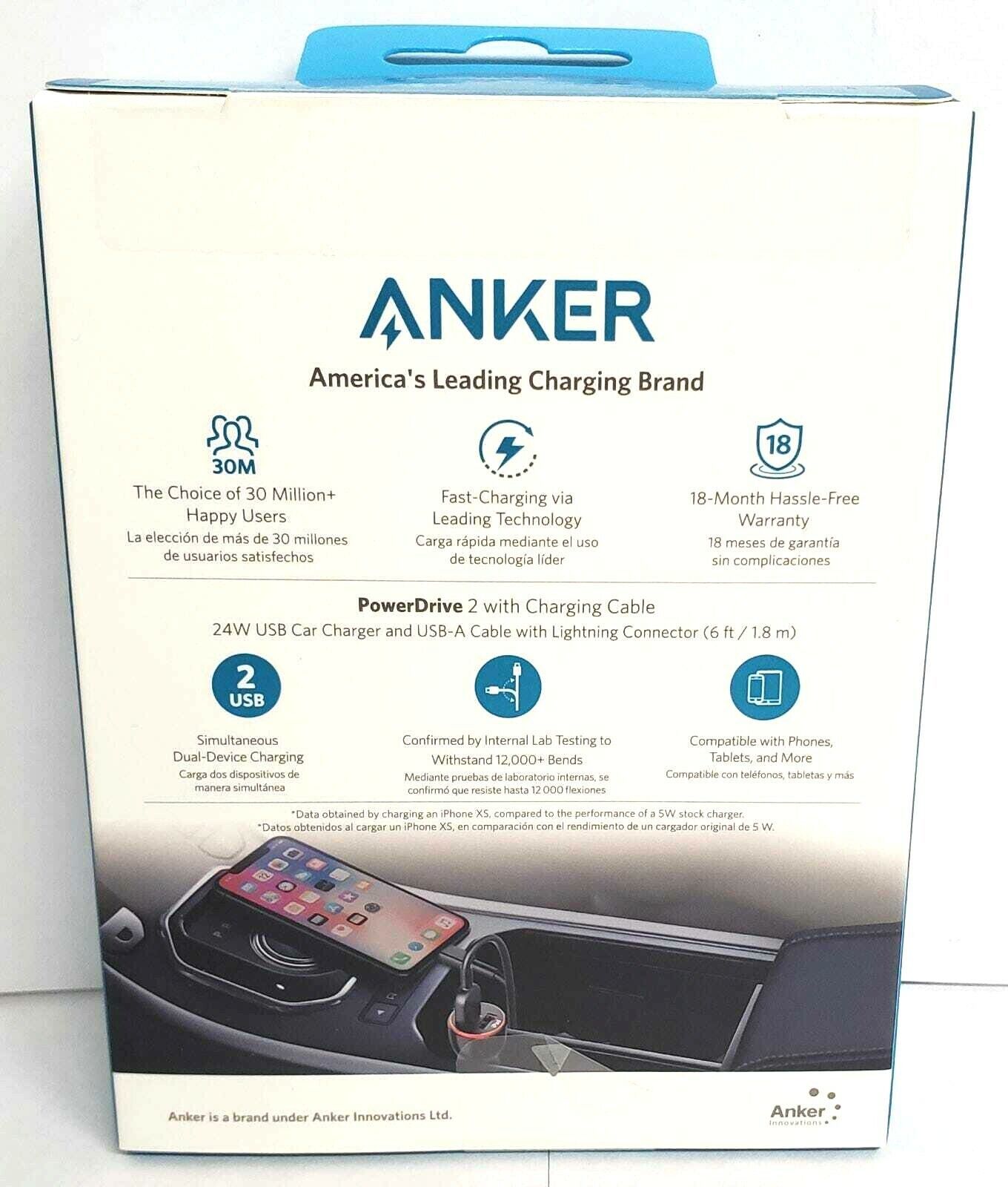 ANKER PowerDrive 24W 2 port with 6FT USB-A - Lightning Cable