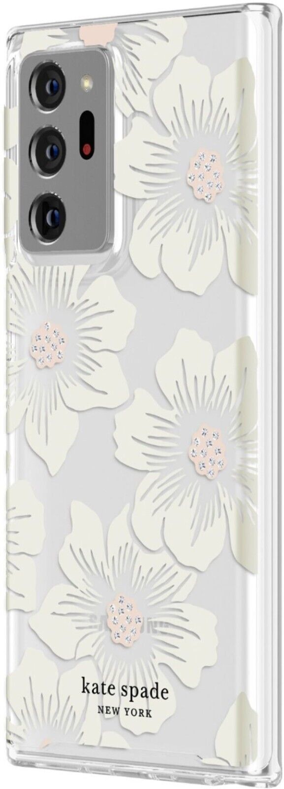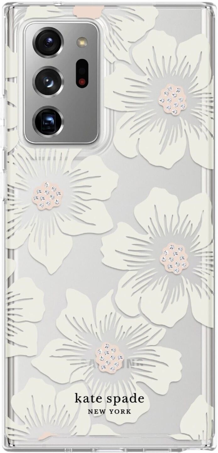 Show off your personal style with the playful sophistication of our Kate Spade New York Protective Hardshell Case for Samsung Galaxy Note 20 Ultra - Hollyhock Floral Clear/Cream with Stones