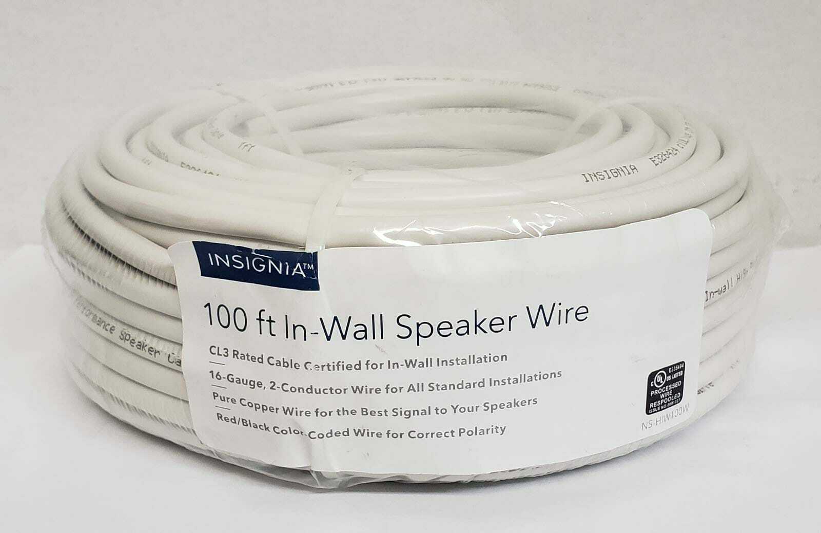 Experience quality audio transmission with this Insignia in wall speaker cable. The 16 gauge thickness ensures long lasting durability, while the pure copper construction enhances signal clarity for immersive sound. This two wire Insignia in wall speaker cable is color coded to help identify polarity quickly for simple connections, and the 100 foot length accommodates flexible setup options.