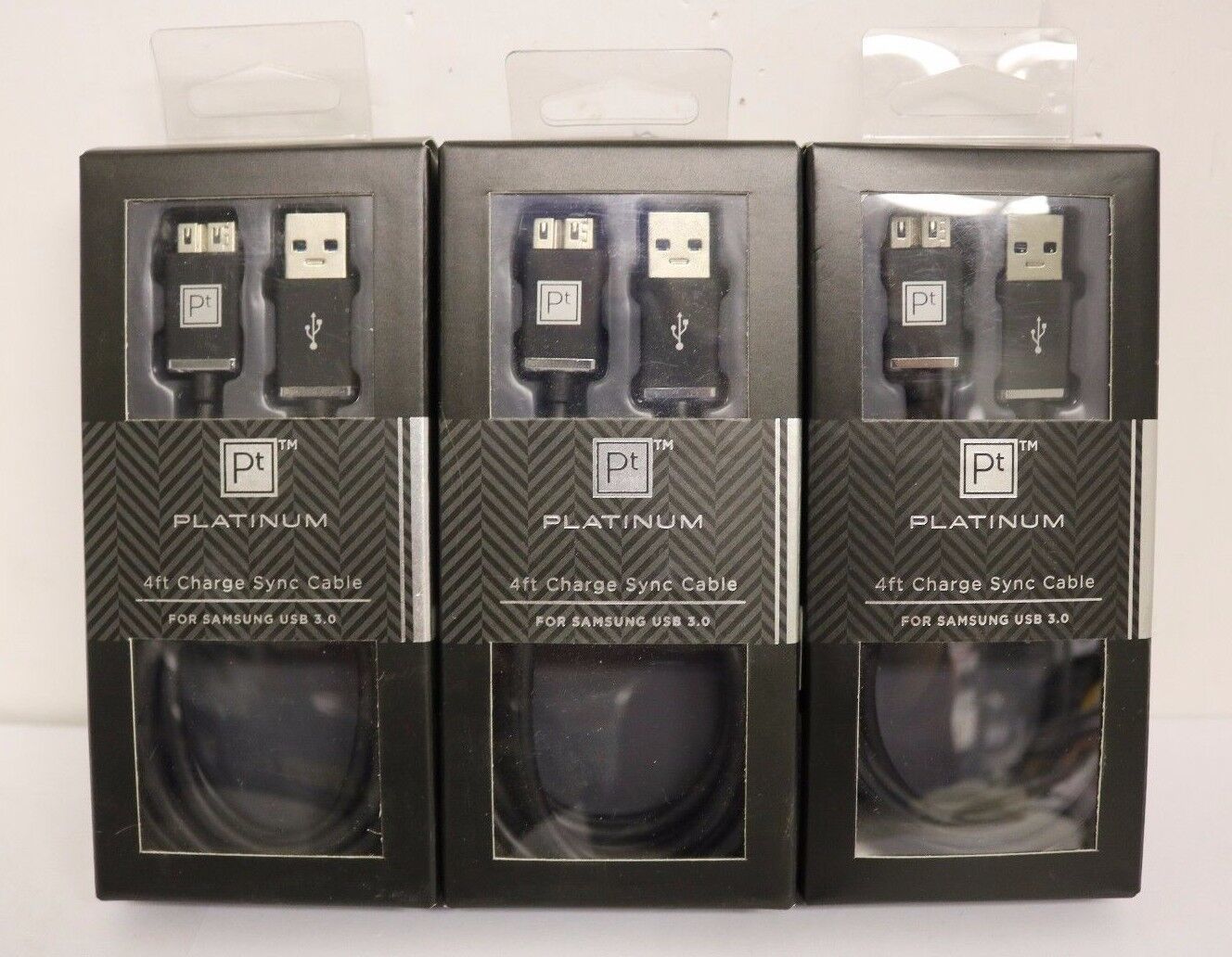 LOT OF 3 Platinum 4' Micro USB Charge-and-Sync Cable - Black/Chrome - PT-MUSB3BC