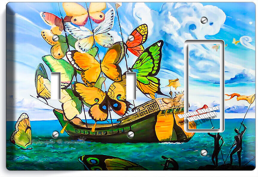 SALVADOR DALI SHIP WITH BUTTERFLY SAILS BOAT LIGHT SWITCH OUTLET ART WALL PLATES