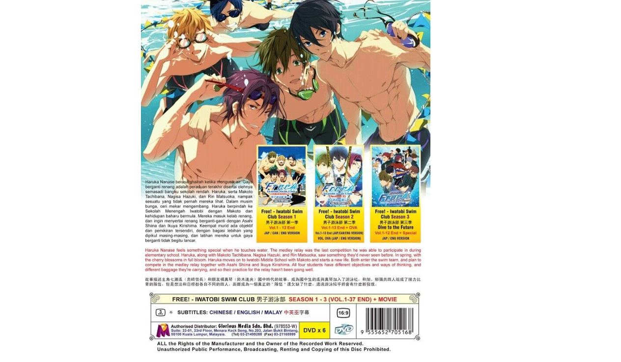 DVD Anime Iwatobi Swim Club Complete Season 1+2+3 (1-37)+Movie English DUB