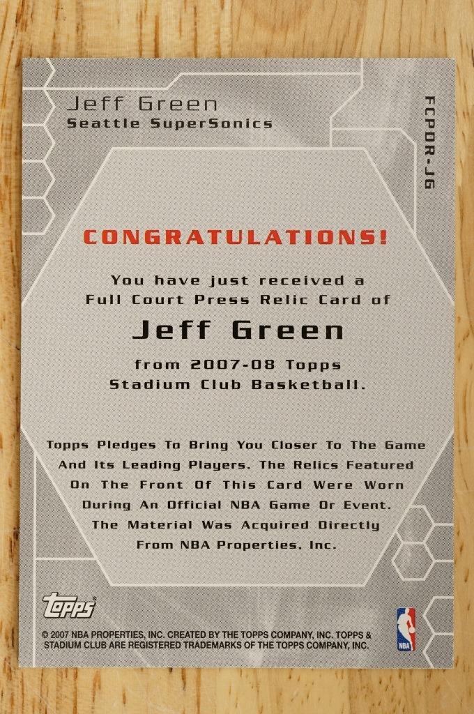 2007-08 Stadium Club Full Court Press Relics FCPDR-JG Jeff Green Jersey 146/499