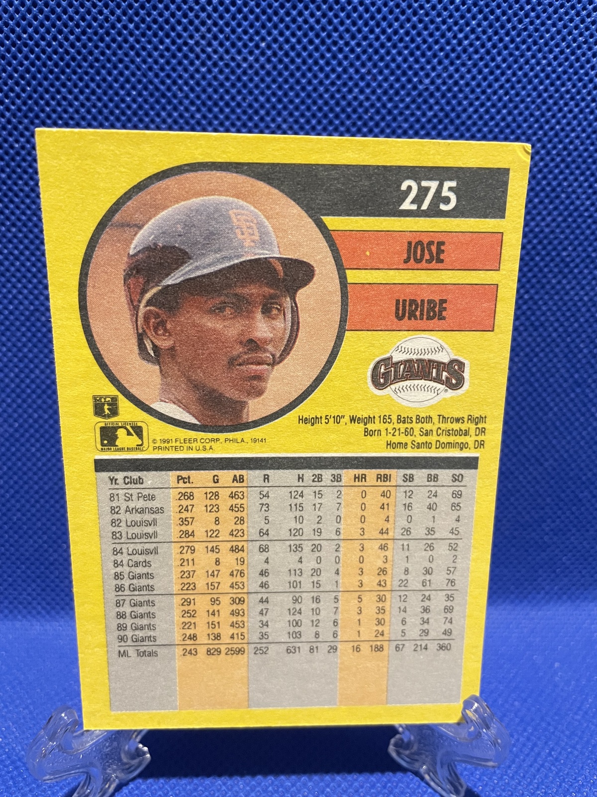 Jose Uribe # 275 1990 Fleer Error Baseball Card